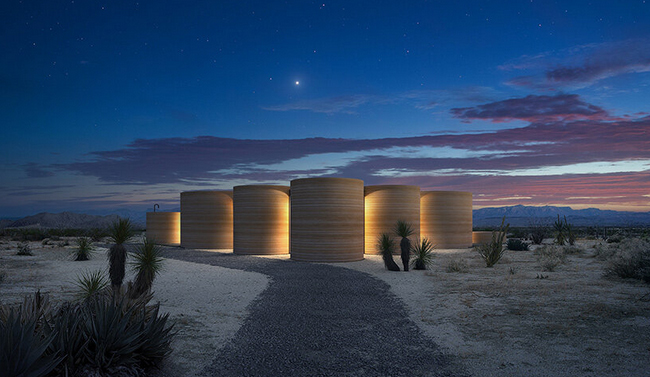 ‘What’s more, the innovation and beauty of the types of structures we can build extends far beyond the box. It’s fitting that ICON has a contract with NASA to build the first dwellings on the moon and on Mars. I’m excited that we get to explore their incredible work right here in our own little cosmic landscape under the stars in far West Texas.’