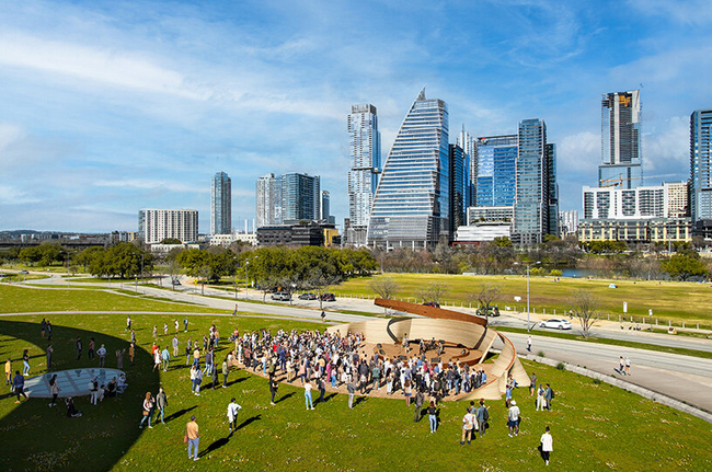 To celebrate the exciting unveiling of El Cosmico’s expansion, the group has partnered with The Long Center for the Performing Arts, a community gathering place, to bring a taste of El Cosmico to Austin, Texas. The teaser project has brought the first 3D-printed performance pavilion to the city, reflecting the reimagined El Cosmico’s architectural design themes of ‘cosmic organizations, perfect geometries, and organic forms.’ The group note that the design of the pavilion ‘combines and extends some of these themes into a single, sculptural piece that serves as a landmark and a gathering space for culture, community, and the city in the heart of downtown Austin.’ The performance pavilion will open on March 15th, 2023 in time for the city’s South by Southwest (SXSW) festival.