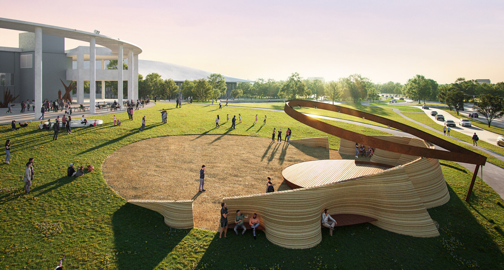 ‘The truly unique and divergent architectures made possible by 3D printing are really just beginning,’ said Jason Ballard, co-founder and CEO of ICON. ‘One of the great joys of ICON is putting our technology into the hands of great creatives and seeing what possibilities emerge. The collaboration with Liz and Bjarke is a total dream, and it’s a tremendous honor for us to join them at the forefront of design and architecture. Liz is truly the Queen of Cool and one of the national treasures of Texas. It is incredible to help her cosmic imaginings become earthly reality.’