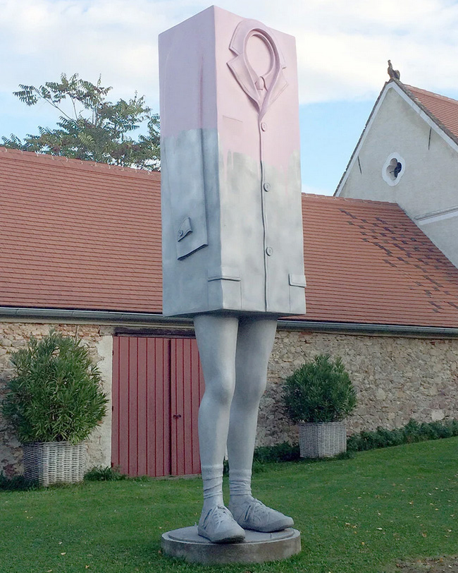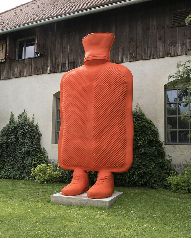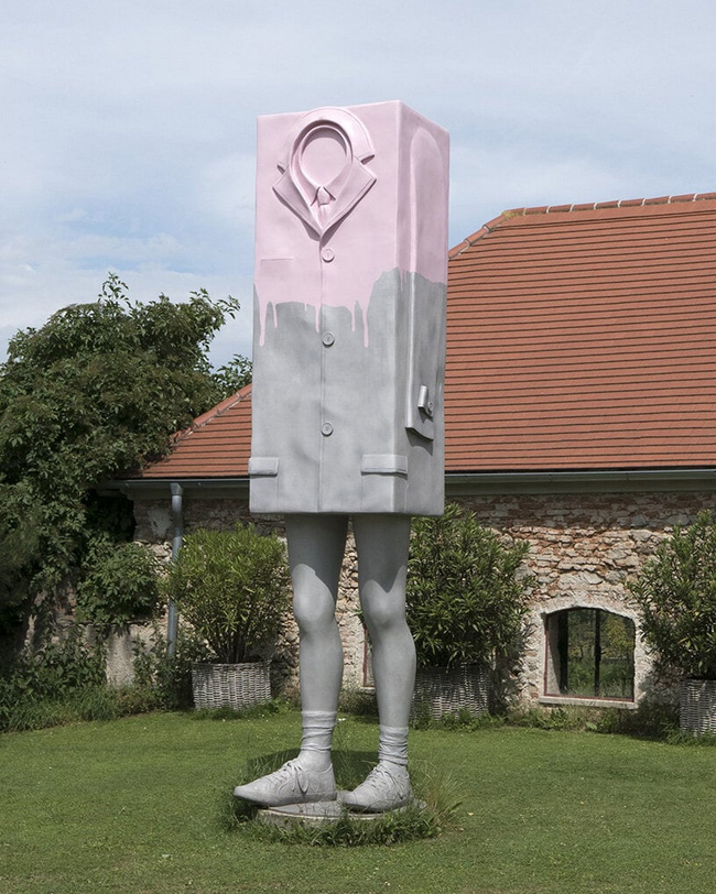 orkshire Sculpture Park’s outdoor ‘heritage landscape’ will feature nineteen sculptures, some of which have never been seen before. Among them are three pieces from Wurm’s ‘Bags’ series, which explore objects of status and consumer culture. One of these sculptures, called ‘Big Step’ (2021), is five meters tall and pastel blue, and is designed to resemble the Hermès Birkin bag — a contemporary symbol of prestige and wealth. The personified sculpture has long, elegant legs that appear to be walking purposefully. The other two sculptures in the series are ‘Dance’ (2021) and ‘Trip’ (2021), which are designed to resemble a briefcase and suitcase respectively. Like ‘Big Step,’ they feature long, dynamic legs that give the impression of human life within the landscape.