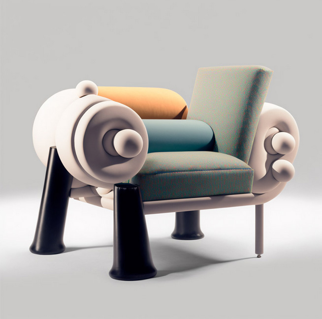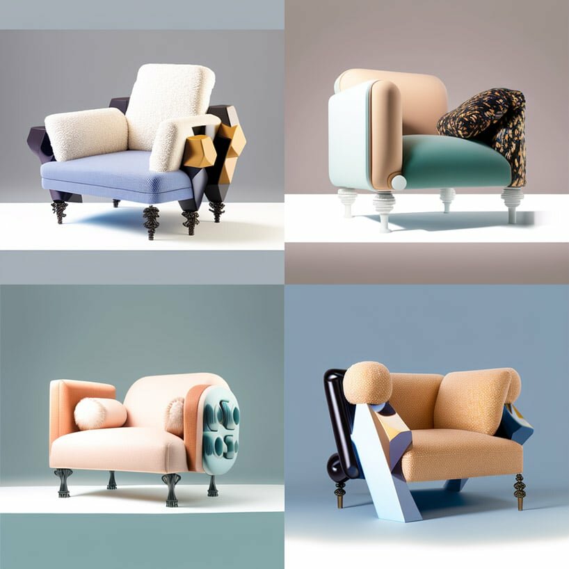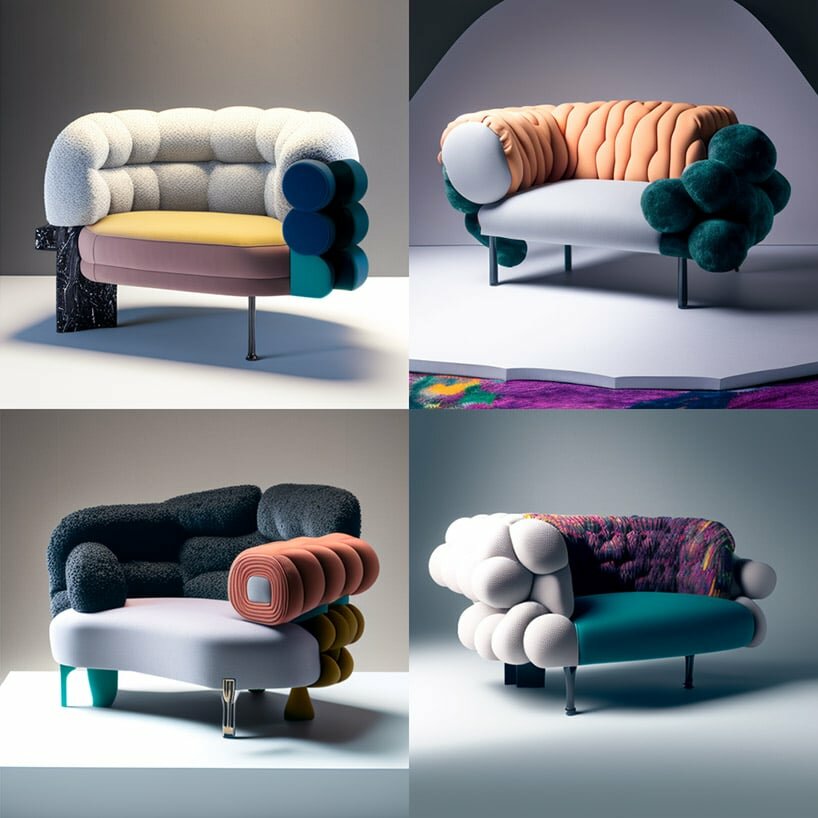 Designboom_ With the rapidly surging technological wave, traditional designers have increasingly begun adapting artificial intelligence to enhance their workflow and open boundless avenues for creative expression. Creative industries in particular have taken on tools such as Midjourney and DALL-E to expand their practices and uncover the boundless potentials of generative design. Among them, Joe Zander, founder of design consultancy agency Bureau3000, has taken on these tools to envision a new furniture style direction for the 2020s. For Studio Danucio, Bureau3000 introduces a series of playful seats and sofas that fuse avant-garde with pop-art and new luxury in vibrant expressions.