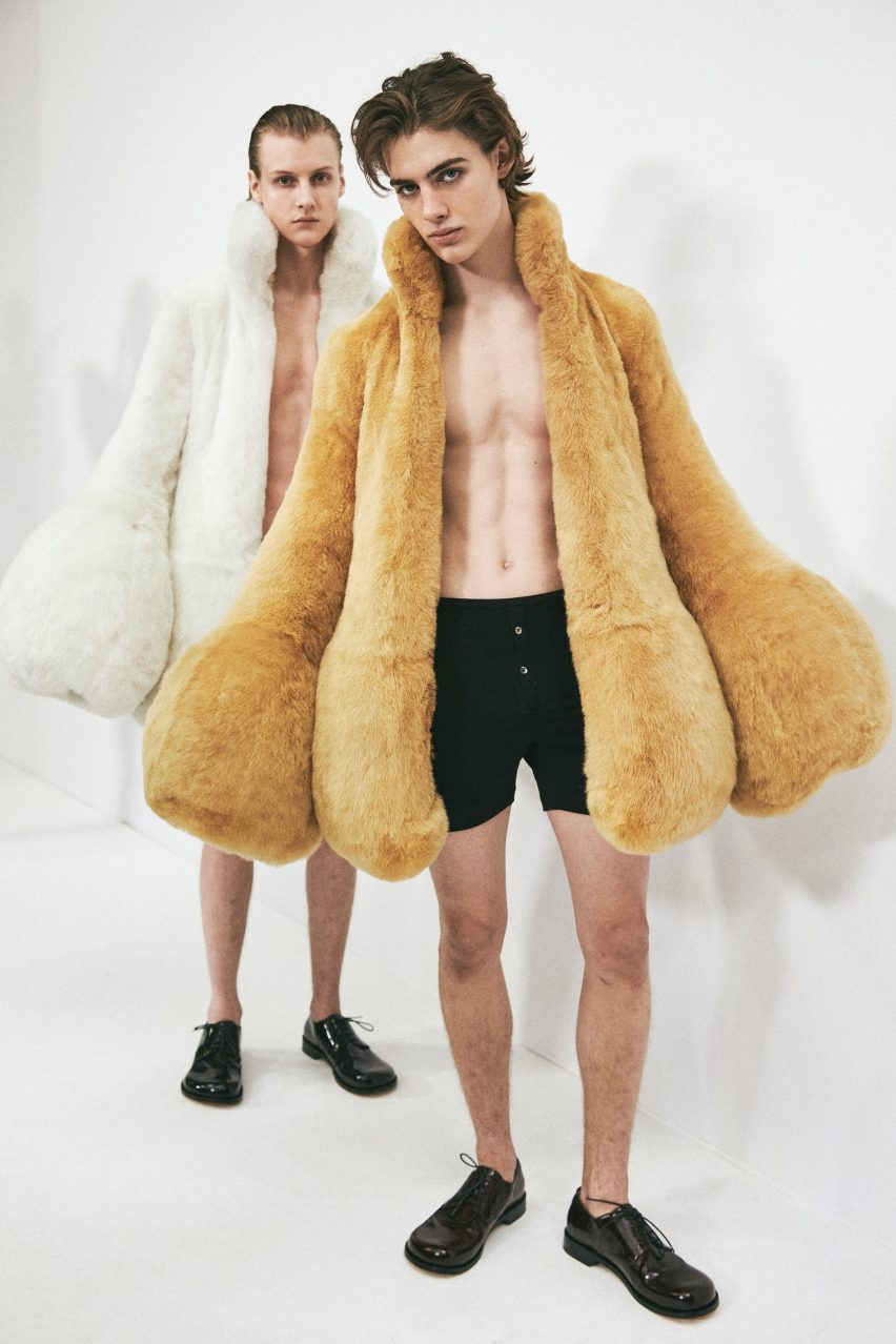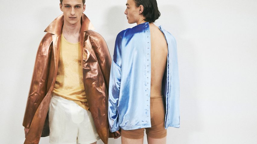 Dezeen_ Spanish fashion brand Loewe collaborated with French metal artist Elie Hirsch to create a series of pewter and copper jackets in bulbous silhouettes for its Autumn Winter 2023 collection.