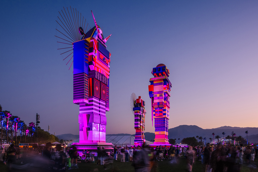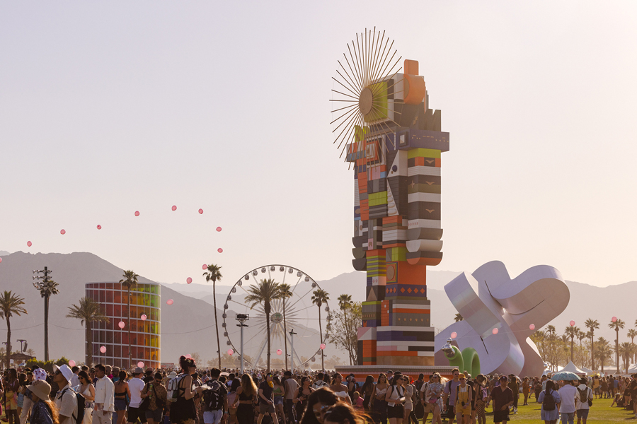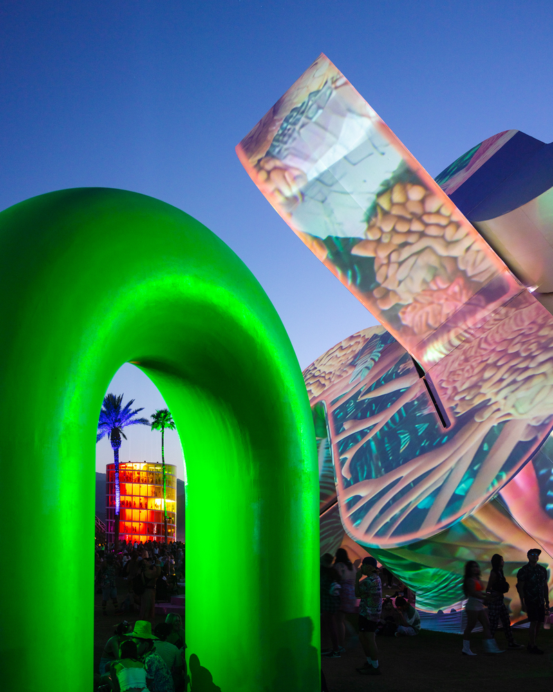 Archdaily_ The Coachella Valley Music Festival, an annual music and arts festival held in the Colorado desert, opened on April 14th, 2023. Over the two weekends, April 14–16 and April 21–23, 2023, four emerging designers and artists worldwide will leave their stamp on the famous landscape. The festival will feature art installations made by a total of nine international designers, artists, and collectives. The newly-commissioned sculptural works by Kumkum Fernando, Vincent Leroy, Güvenç Özel, and Maggie West lend color, light, and alternate perspectives to the charged atmosphere and act as fresh, colorful, and architectural beacons that transform the iconic Coachella landscape at various times of day and night.