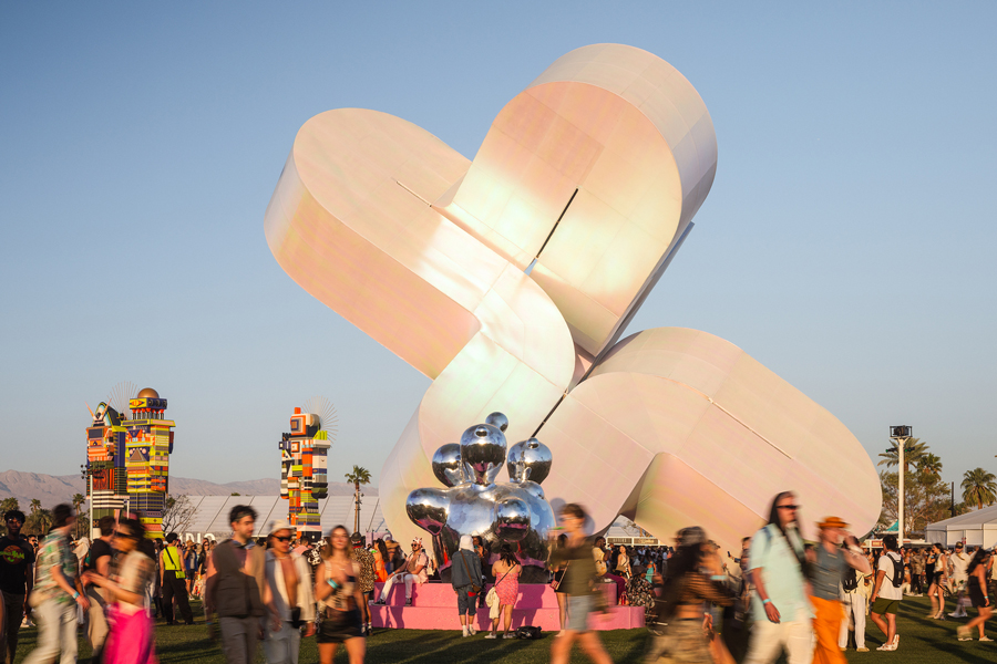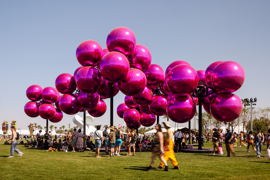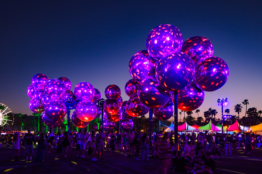 Many returning artists will also be featured in this year's festival, along with the newly commissioned pieces. Robert Bose, infamously known as "The Balloon Guy," will return this year with Balloon Chain. For over a decade, Balloon Chain has covered the sky over Indio, becoming a recognizable feature of the Coachella Valley Music and Arts Festival. Do LaB, Los Angeles-based creative firm will be at Coachella Valley Music and Art Festival with new and inventive stage designs. DKLA Designed “Mustang,” their latest contribution of DKLA Design to the Music and Art Festival. UK-based art and design studio NEWSUBSTANCE returned to the festival for the fourth year with "SPECTRA." Finally, Marnie L. Navarro is a Coachella Valley-based multidisciplinary artist re activates "Raices Cultura," a nonprofit committed to empowerment through artistic self-expression and cultural inclusivity.