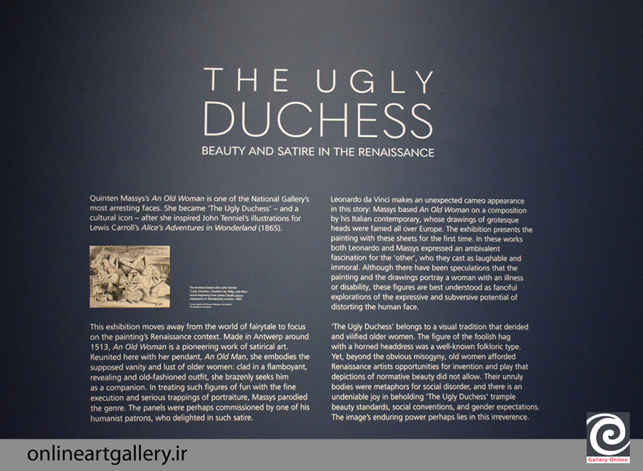 According to Galleryonline, "The Ugly Duchess: Beauty and Satire in the Renaissance" is a fascinating exhibition at the National Gallery that explores the complex relationship between beauty and ugliness in Renaissance art. The exhibition is centred around one of the most famous portraits in the National Gallery's collection, Quentin Massys' "The Ugly Duchess," and features a variety of works by artists from the 15th and 16th centuries.