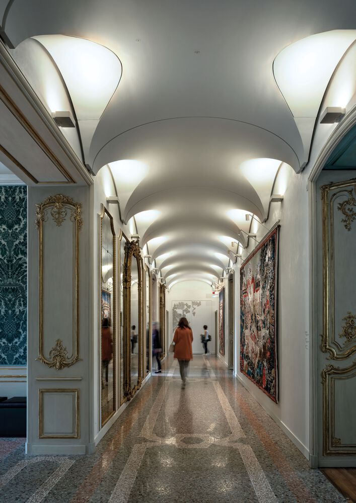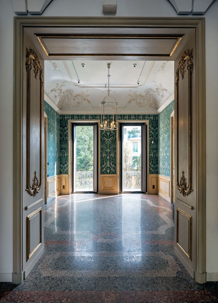 The piano nobile has been rearranged and restored sensitively with considered contemporary interventions by Mario Cucinella Architects. The second floor is home to temporary events and exhibitions. The third floor houses the Andrea Aprea restaurant named after the celebrated Milanese chef. The Foundation’s study collection is held in the sub-basement below the Hypogeum Floor.