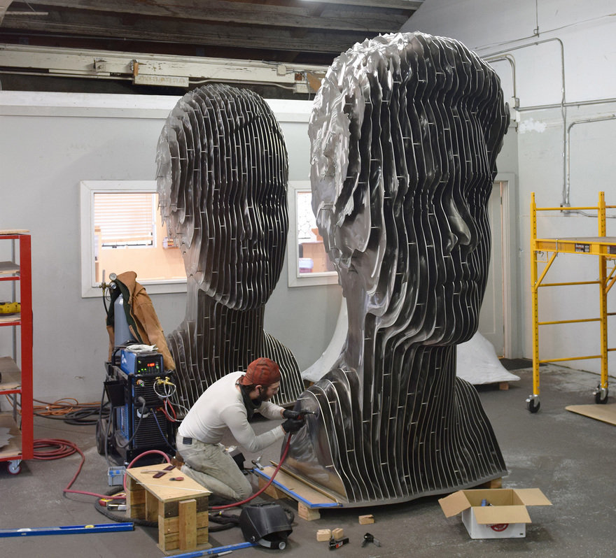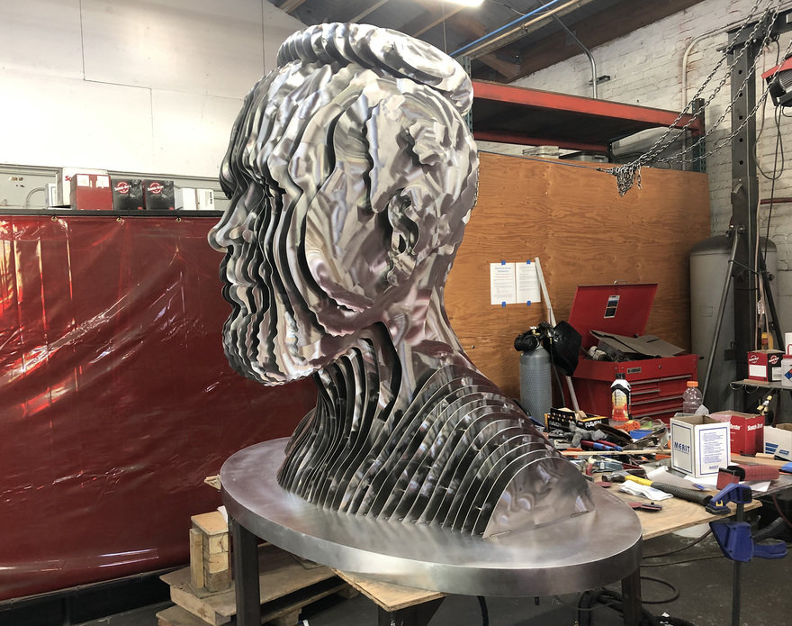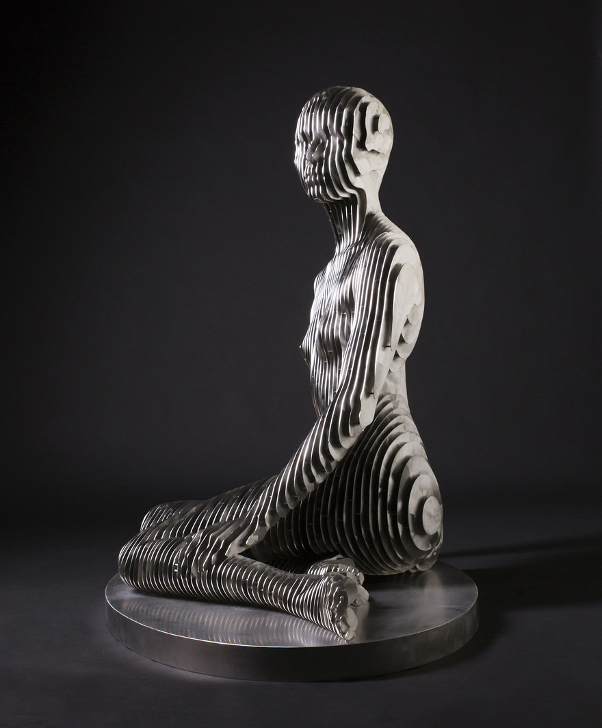 Core77_ Julian Voss-Andreae is a sculptor and quantum physicist (!) based in Portland, Oregon. His incredible sheet metal sculptures exploit the material in a visually clever way that recalls lenticular images.