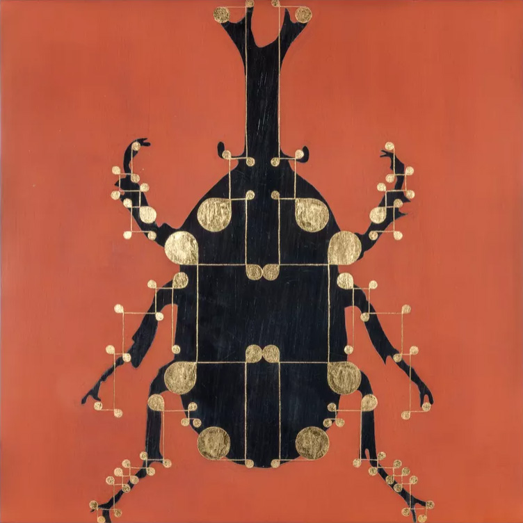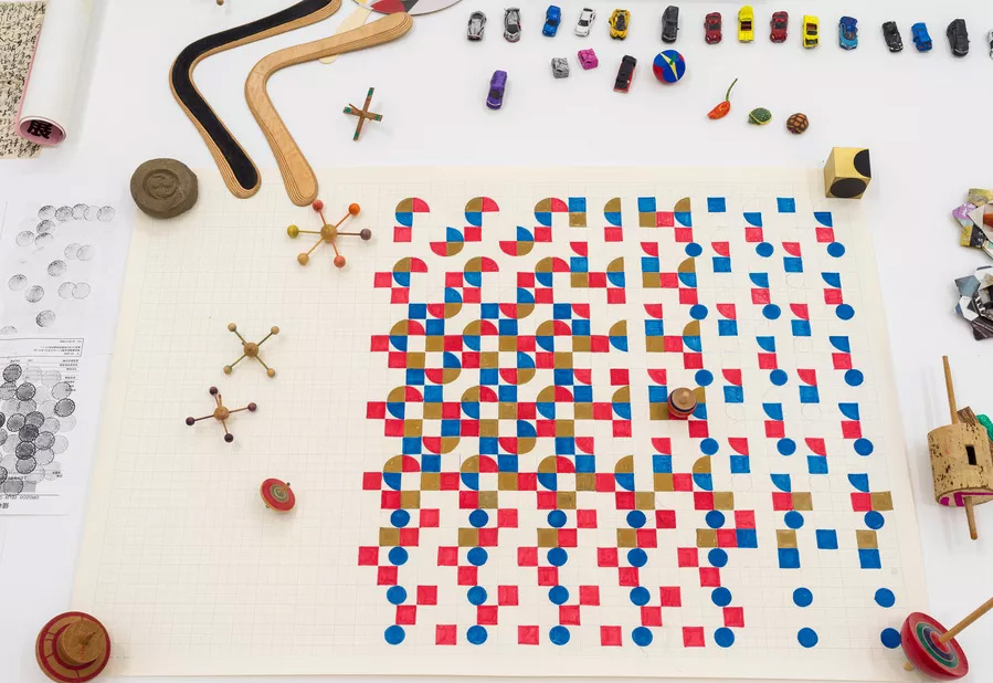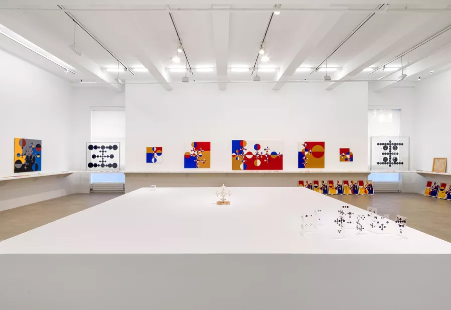His works usually follow simple geometric structures and repetitive patterns.