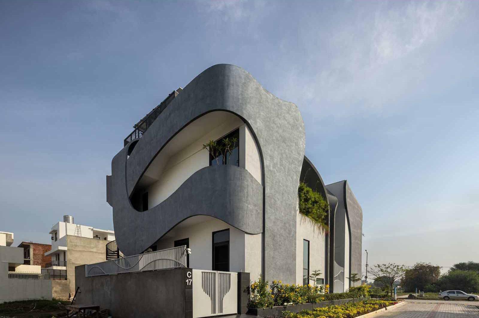 Contemporist_ Studio Ardete has shared photos of a home they have designed in Mohali, India, that has a distinctly different sculptural facade.