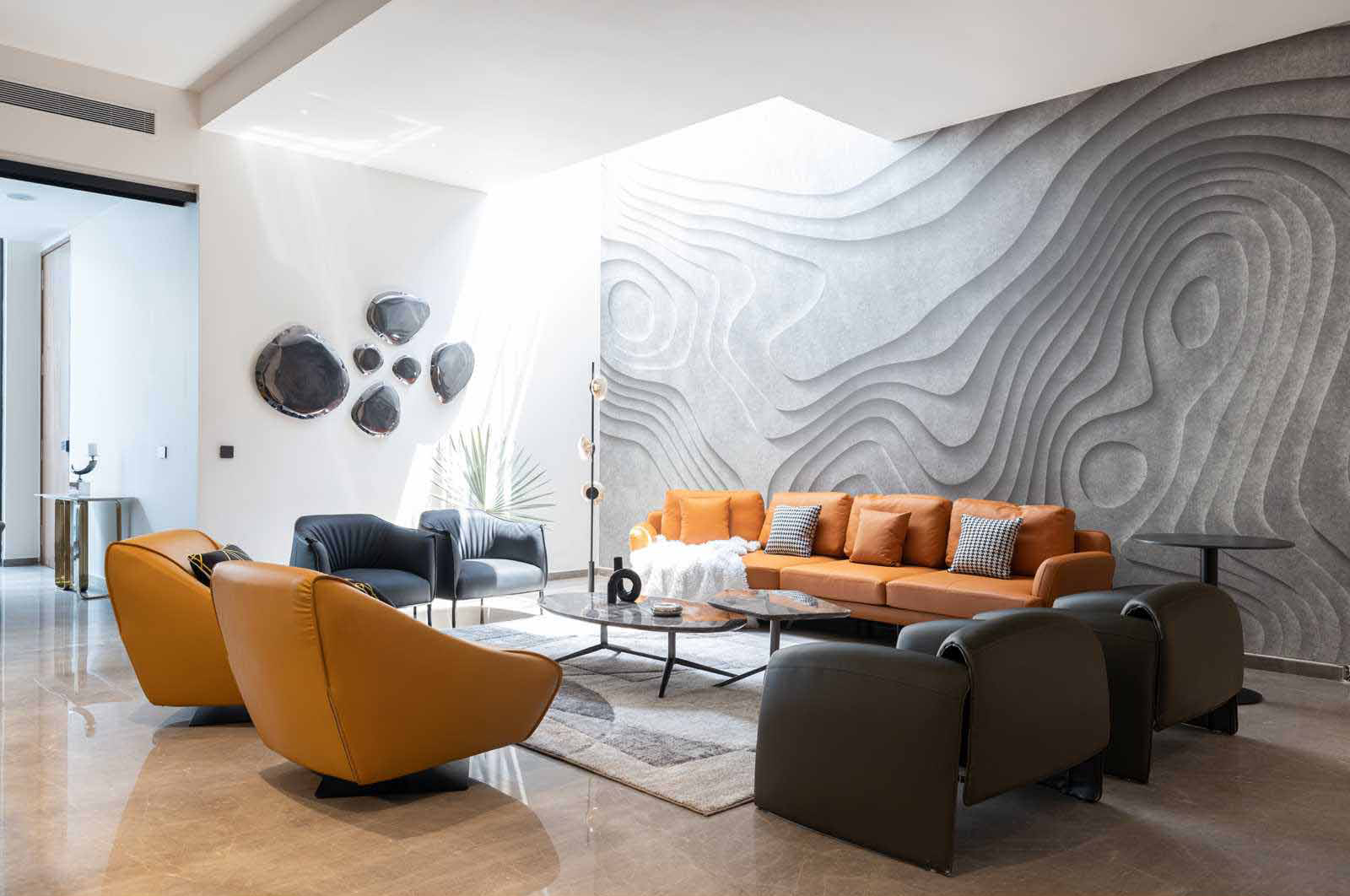 The free-flowing concrete exterior intrigues both users and onlookers from the outside as well as the interior, while the jutting concrete volumes provide shade for the openings and give shape and style to the overall facade.