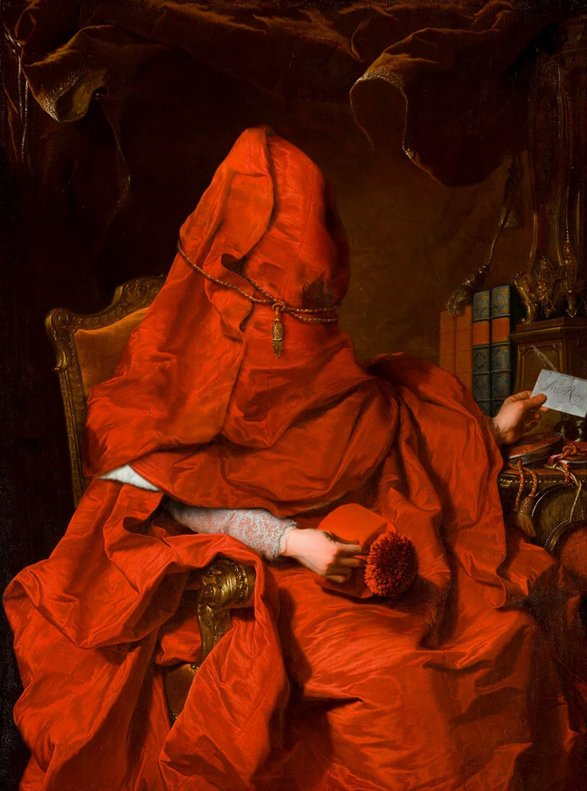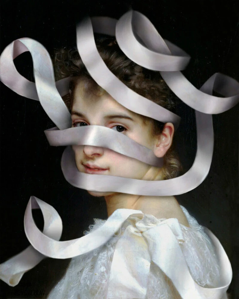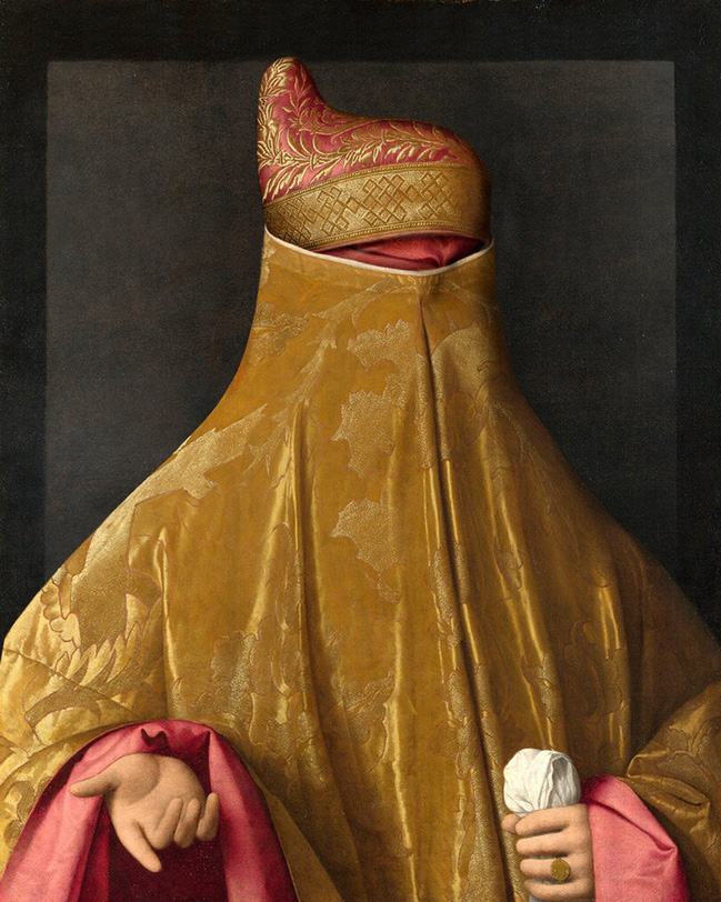 ‘My digital interventions blend credibly with the original, but block access via the face. I cover the sitter, using only already existing elements of the portrait. I do not add anything from the outside and pay attention to the artists’ idiosyncrasies. I create a comprehensible second version of the portraits. Because contact via the face is no longer possible one’s gaze is directed to other areas of the paintings which often pass unnoticed in the original version,’Volker tells designboom.
