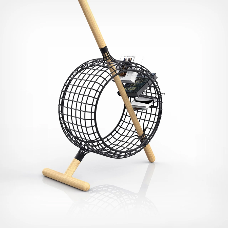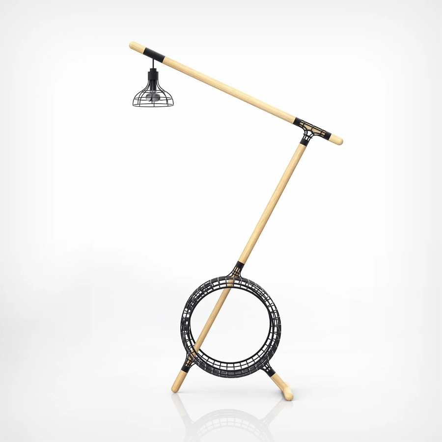 The Lines Series includes a work table, a chair, and a multifunctional floor lamp, that also doubles as a book holder. The distinctive aspect of these pieces lies in their construction: a harmonious marriage of wooden sheets and poles with complex wrought-iron wireframes. These wireframes give the furniture its definitive shape, but without the usual bulk and extensive material use associated with traditional furniture. Despite their seemingly delicate structure, these pieces are designed to bear the weight of everyday human use.