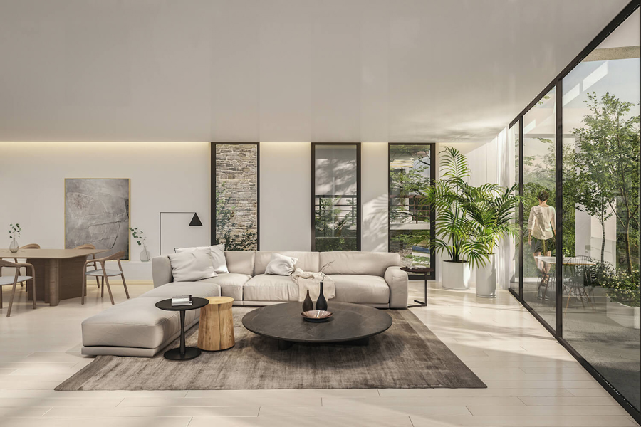 The architects’ initial interaction with the site revealed a unique challenge: the local climatic conditions and surrounding neighborhood could potentially compromise the villa’s privacy and security. Unfazed by these obstacles, the design team made addressing these concerns their foremost priority, making it a pivotal factor in the primary design phases of the project.