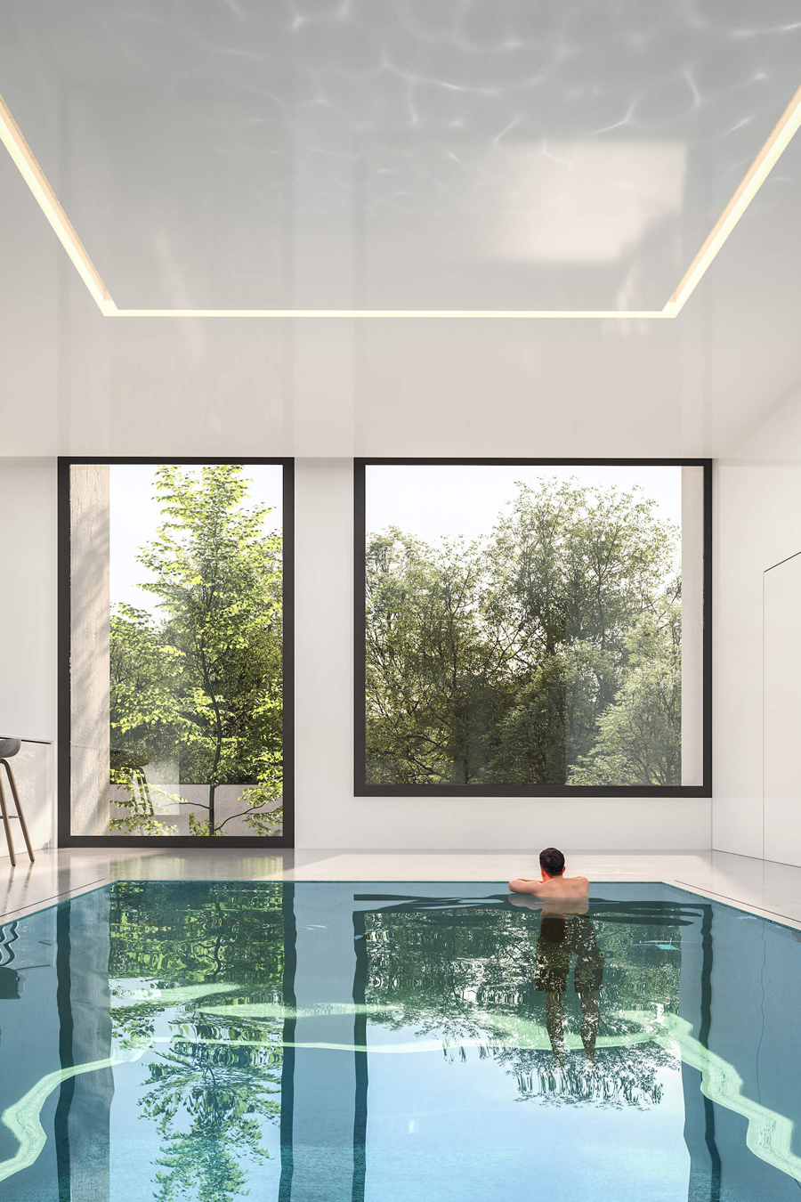 Beautifullife_ Tucked away in the quiet region of Hashtgerd, Alborz province, Layers Villa designed by OJAN Design Studio embodies an inventive fusion of design elements, creating a spectacular haven that spans over 1200 square meters. The estate, boasting four stories, brings forth a tapestry of spaces that include a grand reception hall, an inviting kitchen and dining area, four luxurious master bedrooms, an independent suite, fitness facilities, a serene swimming pool, service areas, and a variety of utility rooms.