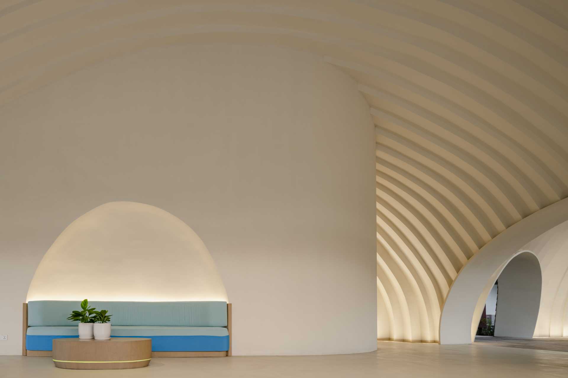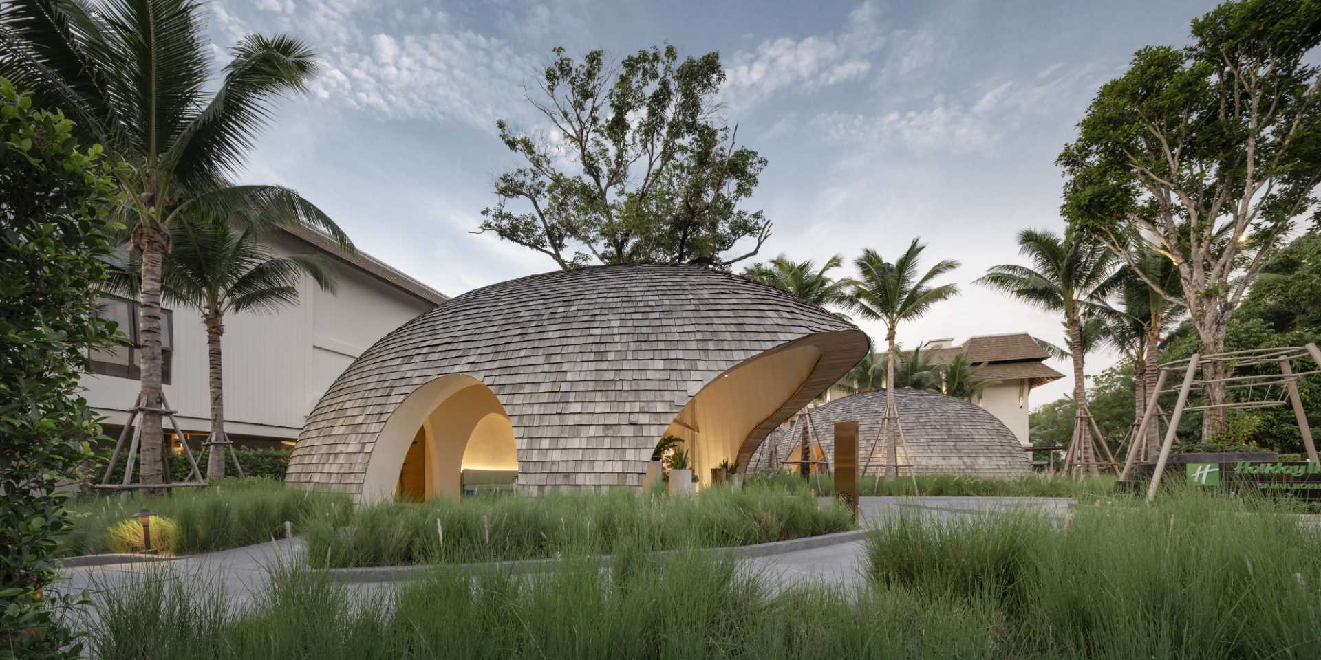 Contemporist_ Architecture firm Onion, has shared photos of a hotel lobby they completed for Holiday Inn Samui in Thailand, whose design is inspired by the coconut shell after its meat has been grated to make Thai dessert.