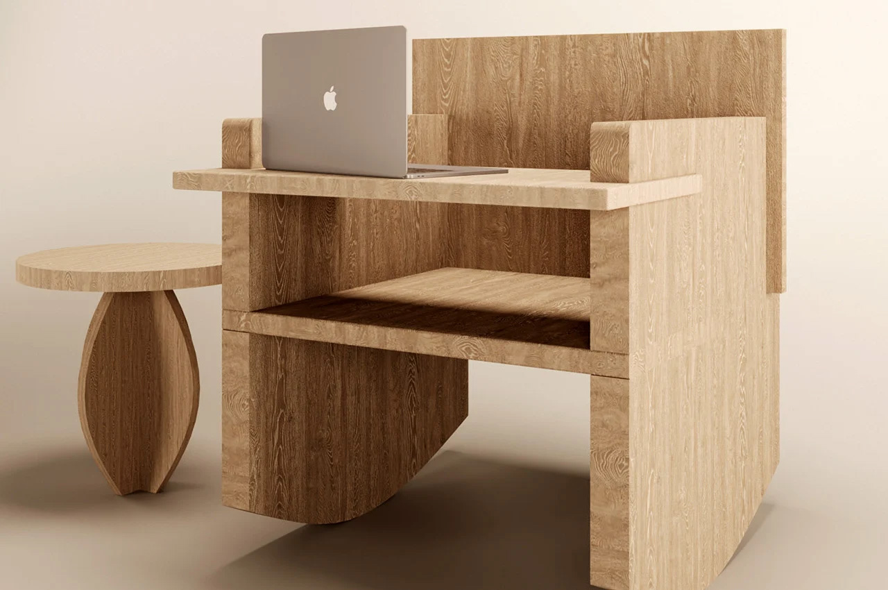 The minimal wooden chair can function as an ordinary chair to sit on, or even a rocker that can be moved back and forth. The rounded bottom edges of the Nice chair allow it to rock back and forth, creating a harmonious lull that could guide anyone to fall asleep. On, the other end, you can slide in a tabletop between the ridges on the arms of the chair, transforming it into a convenient space to work in.
