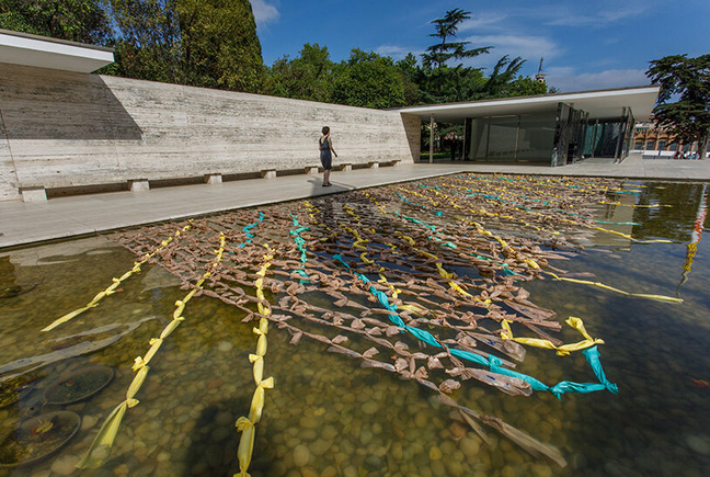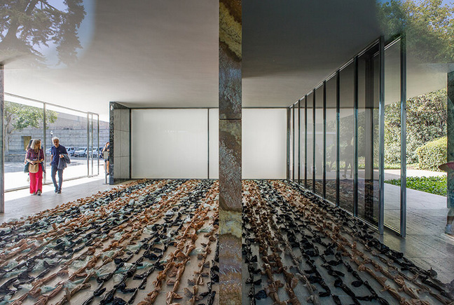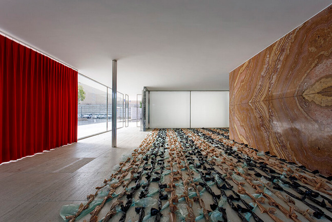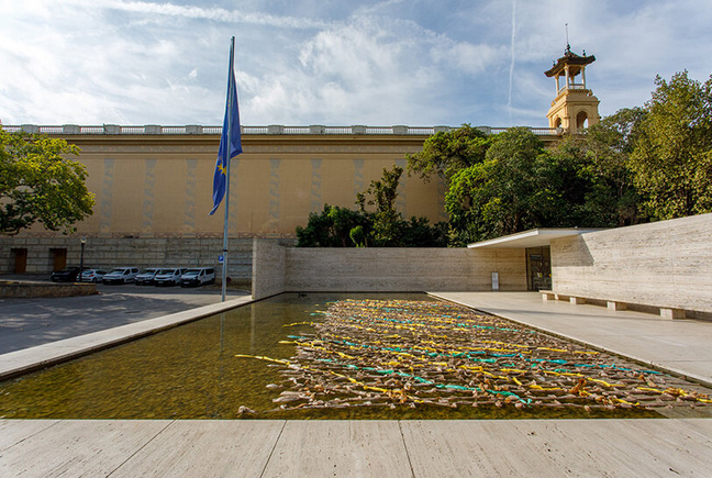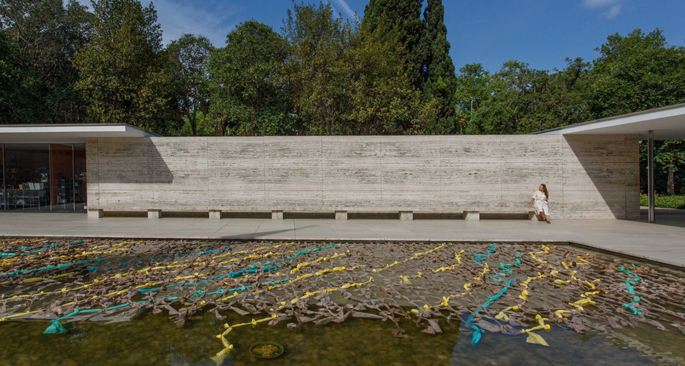 Ultimately, ‘The Cost of Money: Raft’ installation by Mark Cottle at the Mies van der Rohe Barcelona Pavilion links the different parts of the space — inside and out — referring to the Modern Movement of 1925-1950. Many themes emerge as a result, derived from the industrial revolution and its acceleration before World War II, with the social and ecological consequences that have led mankind to drown in its current environmental and humanitarian crisises, especially apparent in vulnerable populations. The project will be on view at the Pavilion until July 23, 2023.