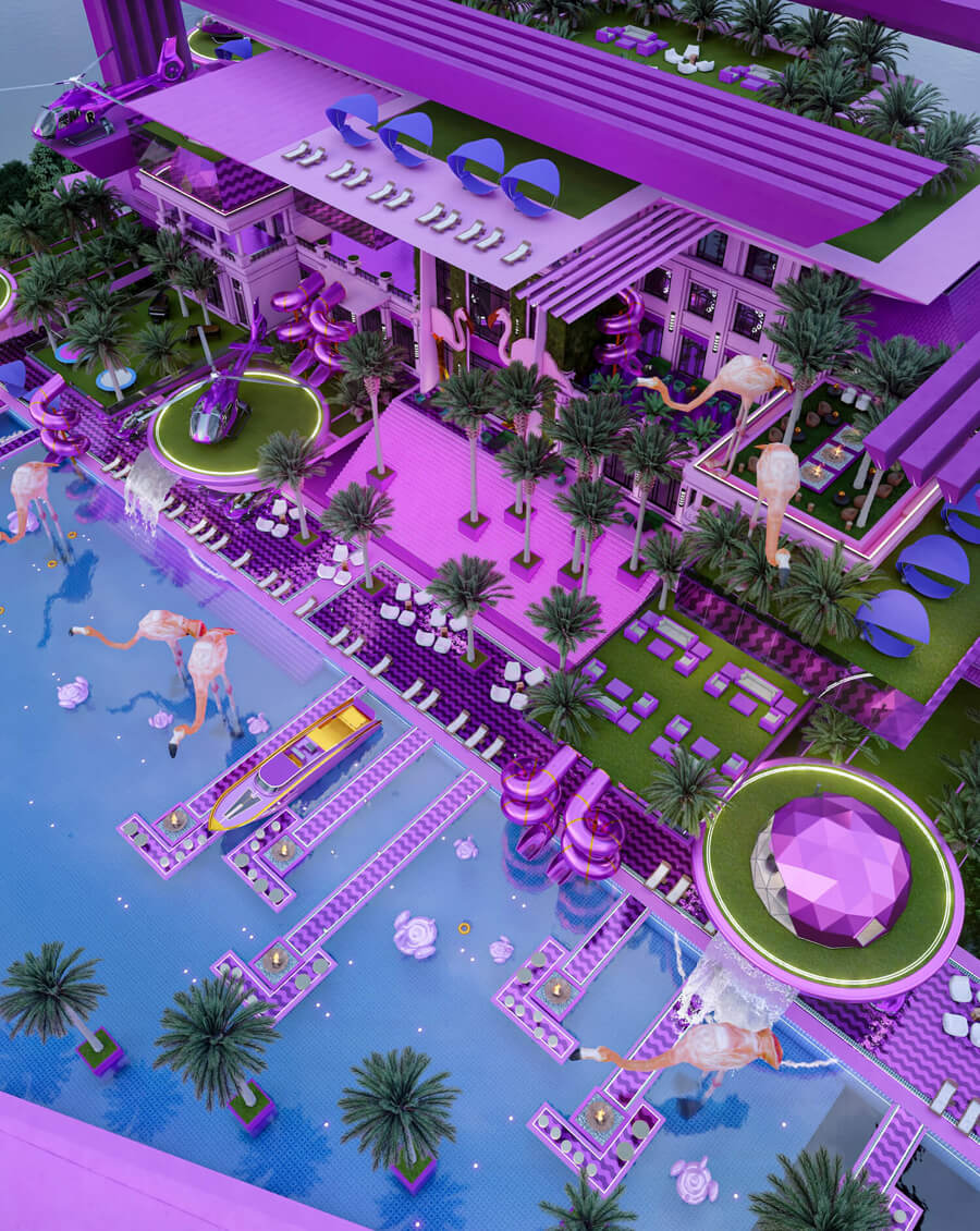 Veliz Arquitecto has created this unique reinterpretation of the iconic Barbie mansion, merging the charm and fun of the Barbie universe with the vibrant Miami style. The result is an enchanting blend of whimsy and glamour, a physical embodiment of the joy that the Barbie movie has sparked in audiences globally.