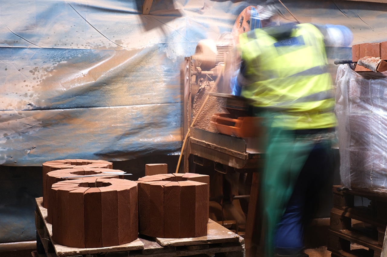 The bench has a rounded geometry but with a brick-like design. It’s actually made from traditional handmade clay bricks that are stacked on top of each other. The design is reminiscent of the brick buildings found on docks with the curved shape of the bench inspired by the wharf edge. The idea for this bench is that people should be interested in approaching it and eventually sitting or reclining on it while enjoying the view from the wharf.