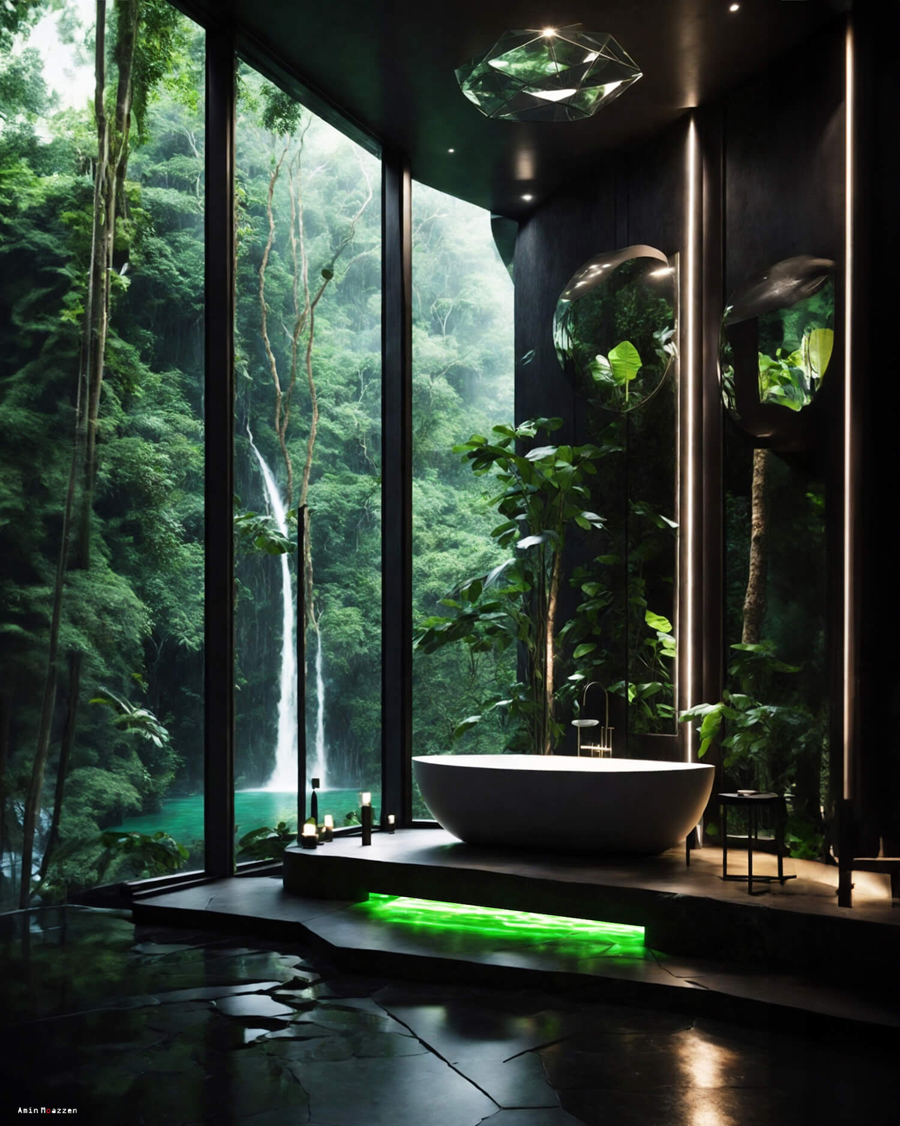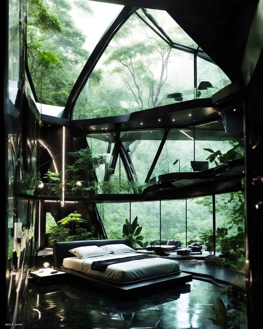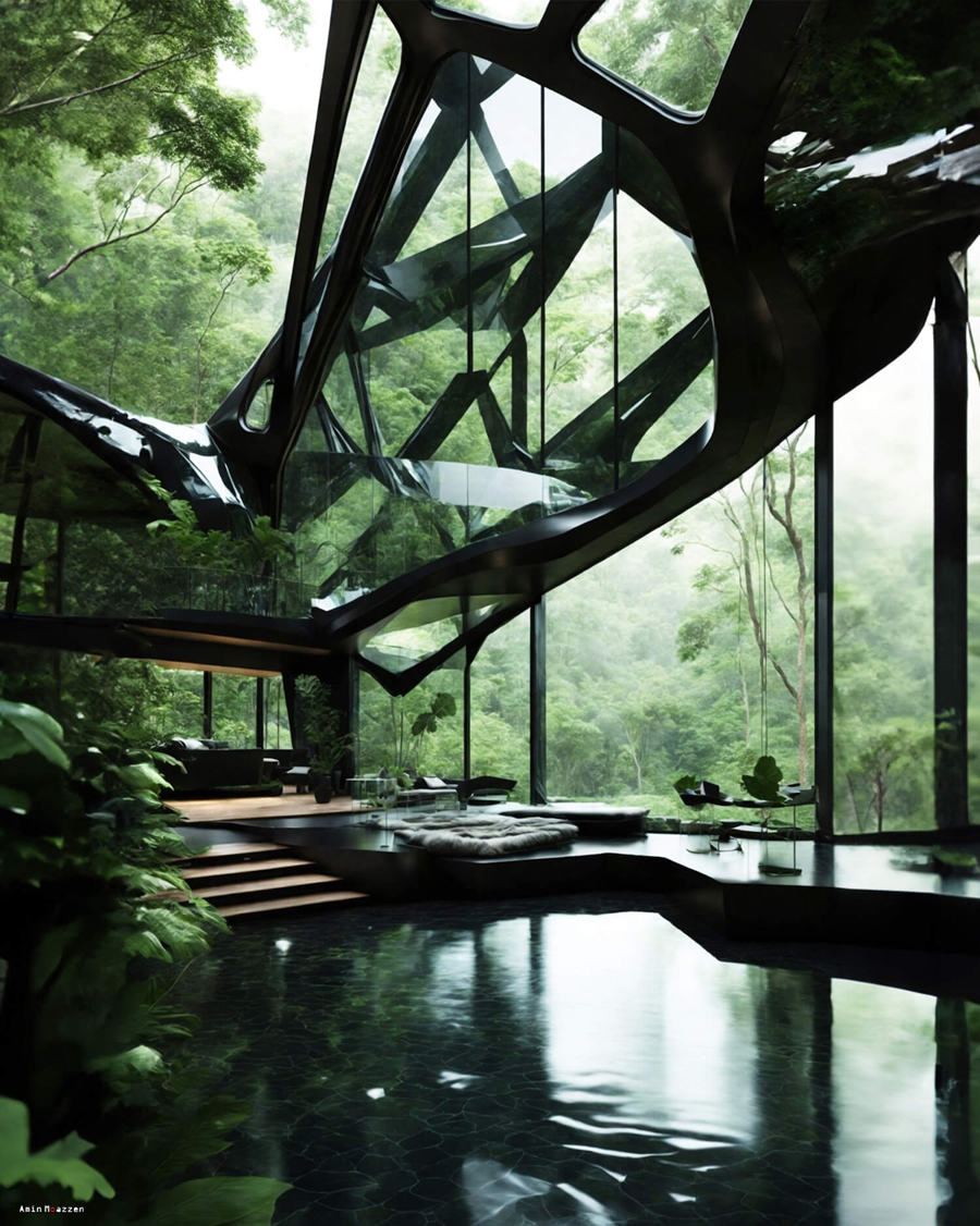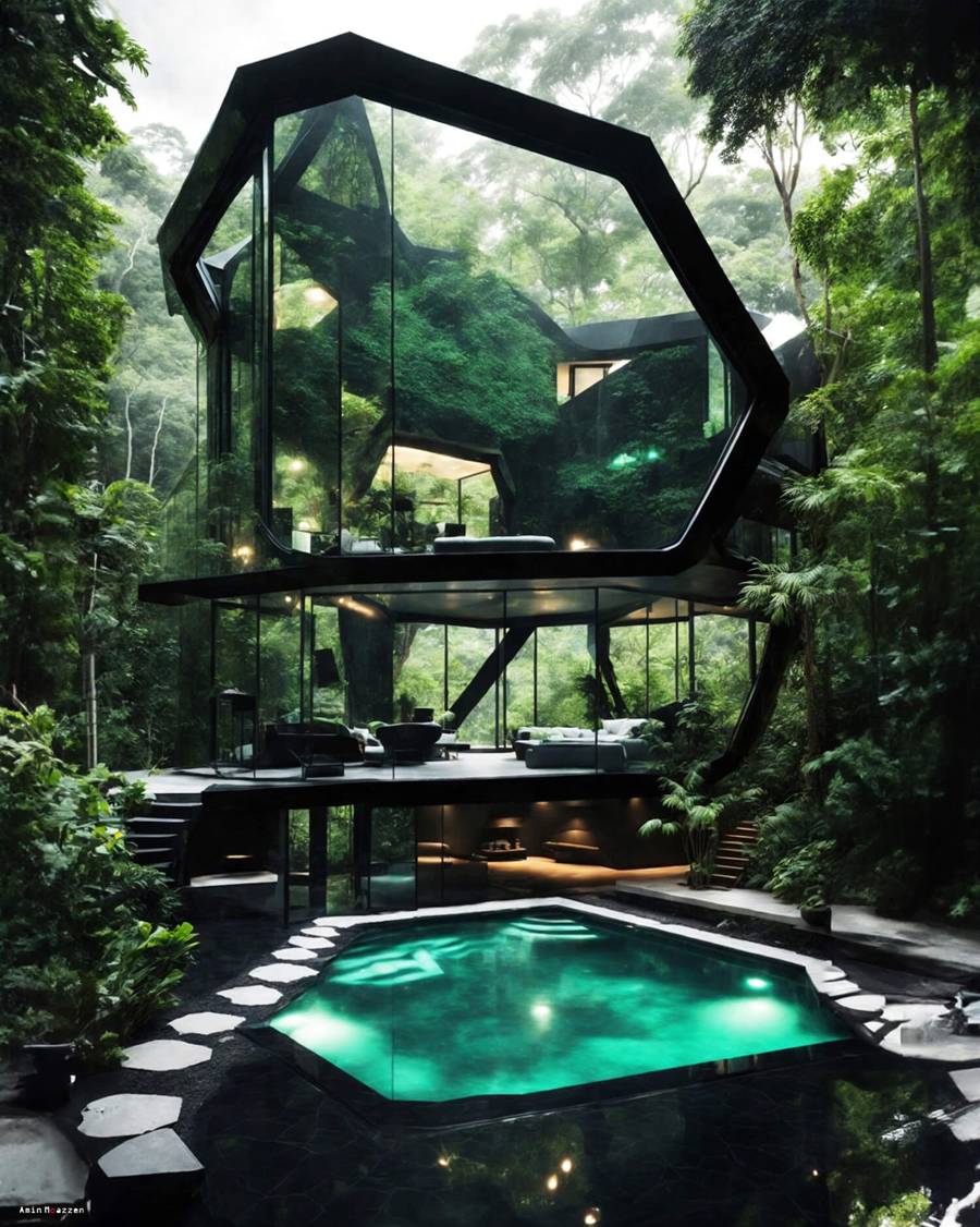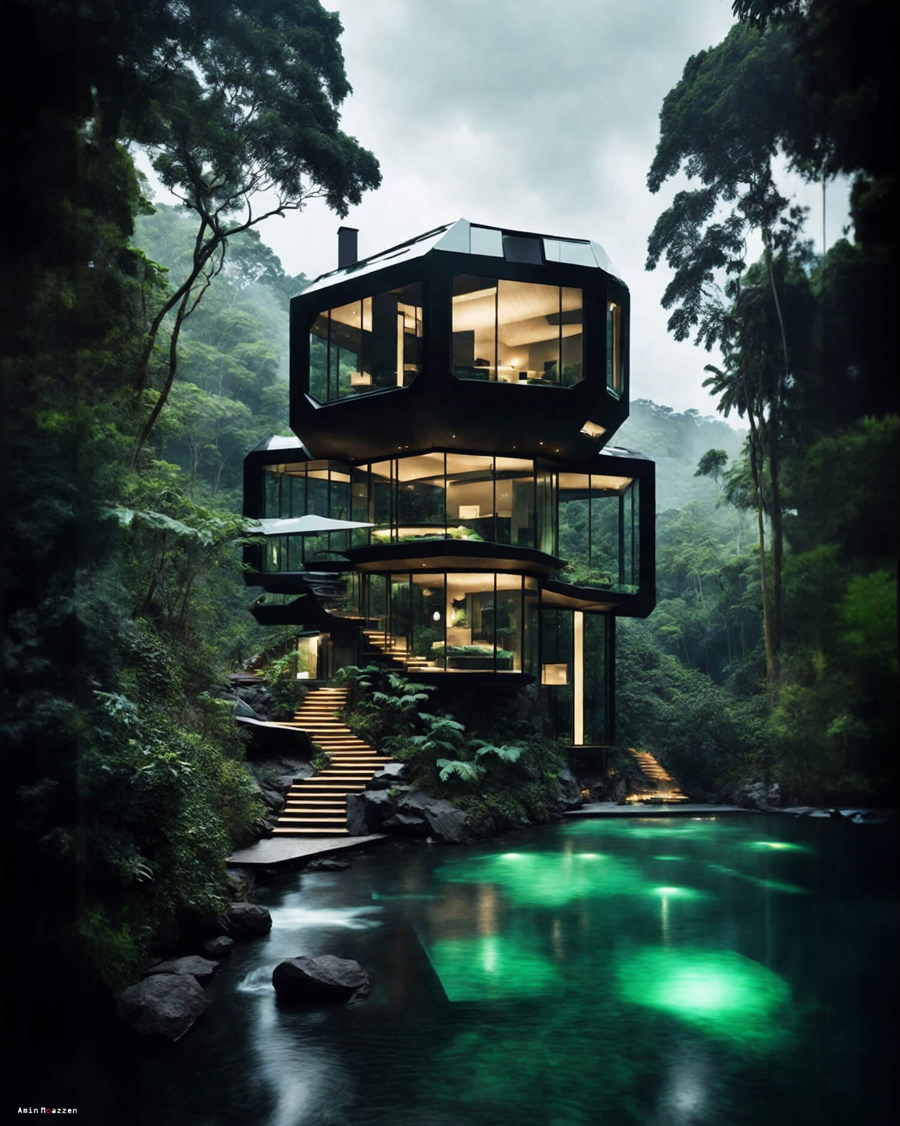 Beautifullife_ Nestled deep within the verdant embrace of the jungle lies a dwelling that seems as though it were conjured straight out of a dream. This modern home by Amin Moazzen is a rare blend of raw nature and refined luxury. It’s not just a house, it’s an ode to nature – a piece of jewellery hidden amidst the lush green.