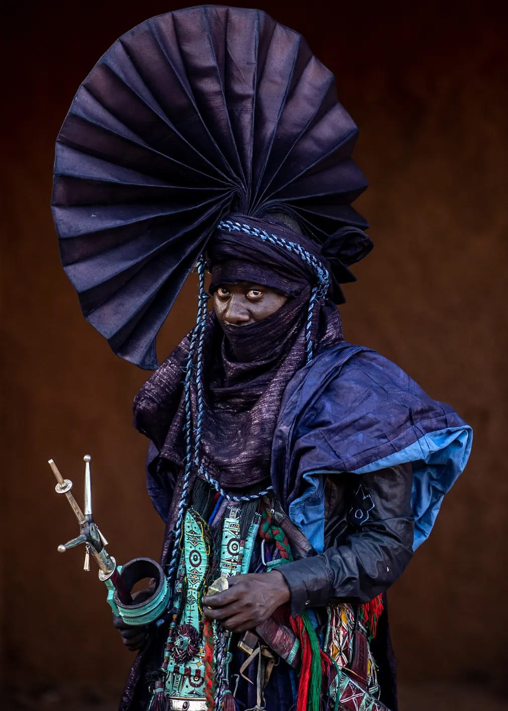 This is a specific war outfit from the Touareg in Agadez, Niger – today only used for touristic purposes.