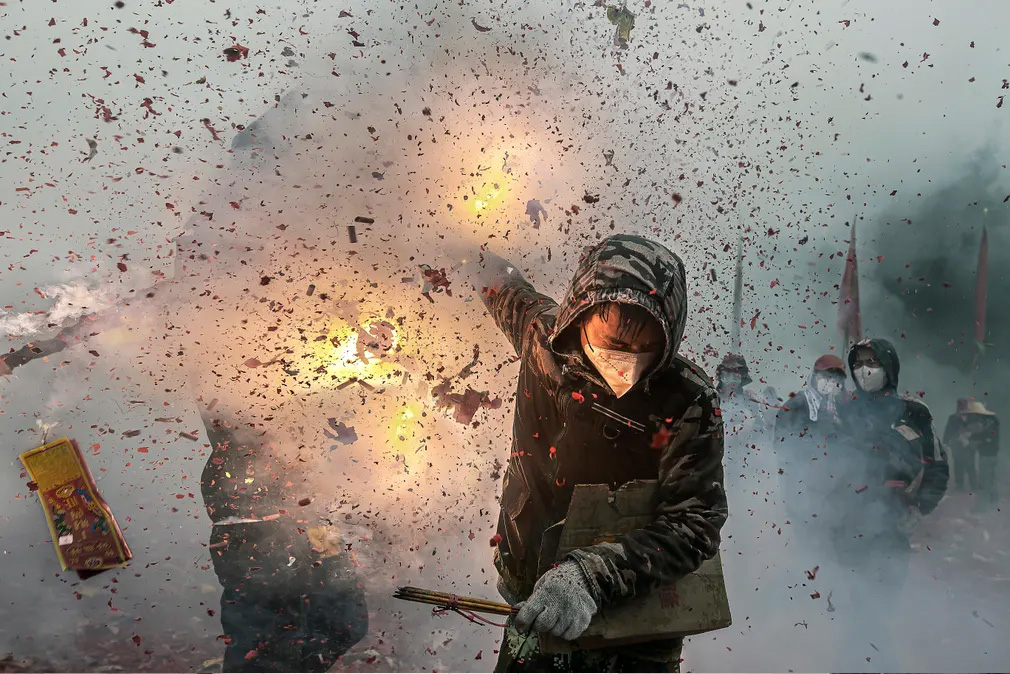 The Spring festival is a major Chinese festival. In Deqing County, Zhaoqing, on the 15th day of the first lunar month, people take turns lighting firecrackers and throwing ‘lions’ until the lions are blown to pieces, praying for peace in all seasons and abundant grain.