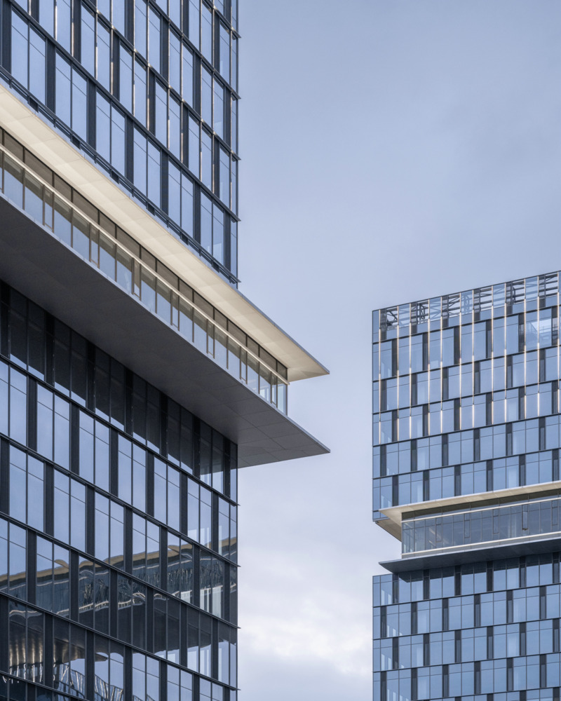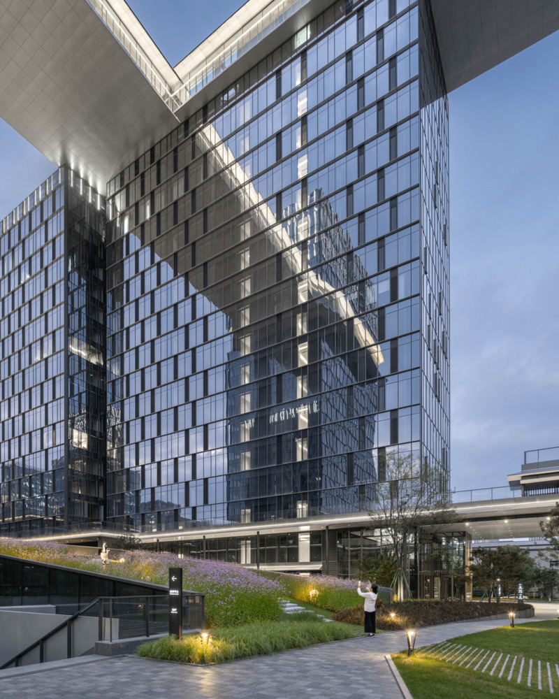 Each group of building volume is different from the other, forming a series of common but varying combinations of relationships and spatial characteristics. It responds to the flexible combination required by a variety of office statuses. In the low-rise podium, a single office space with a smaller volume is set up. The small-scale blocks are split and reorganized, and different spaces are created in overlapping and intersecting, forming an office space connecting the courtyards with terrace spaces. The large space above the podium with the main building is independent of each other but is closely connected through the high-altitude corridors providing a place for medium and large-sized offices.