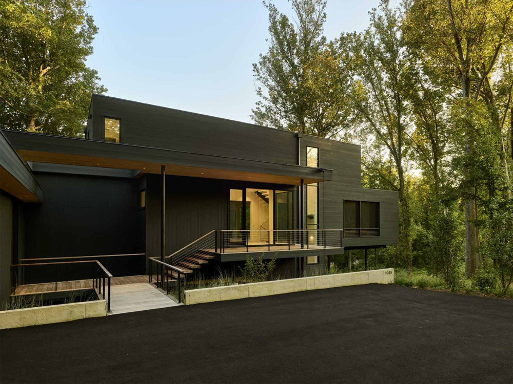 Contemporist_ Robert Young Architects has shared photos of a modern home they designed in Virginia, that’s surrounded by a forest and features a dark exterior.