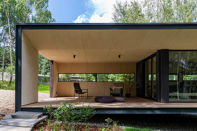 HDN Modular addresses the client’s primary request for a tranquil, picturesque getaway in the forest, shaped with pain-free construction and minimized costs. LEVEL 80 Architects’ cabin design concept maximizes the site’s small footprint and comprises two spaces — the house space and covered terrace — utilizing volumetric modules and panelized constructions. The architects approached the living area, a module measuring 4 x 15 x 4h, with pre-made finishes, built-in furniture, and internal utility networks, meanwhile the panelized terrace was assembled off-site. The duration of installing the whole cabin totaled only a week.