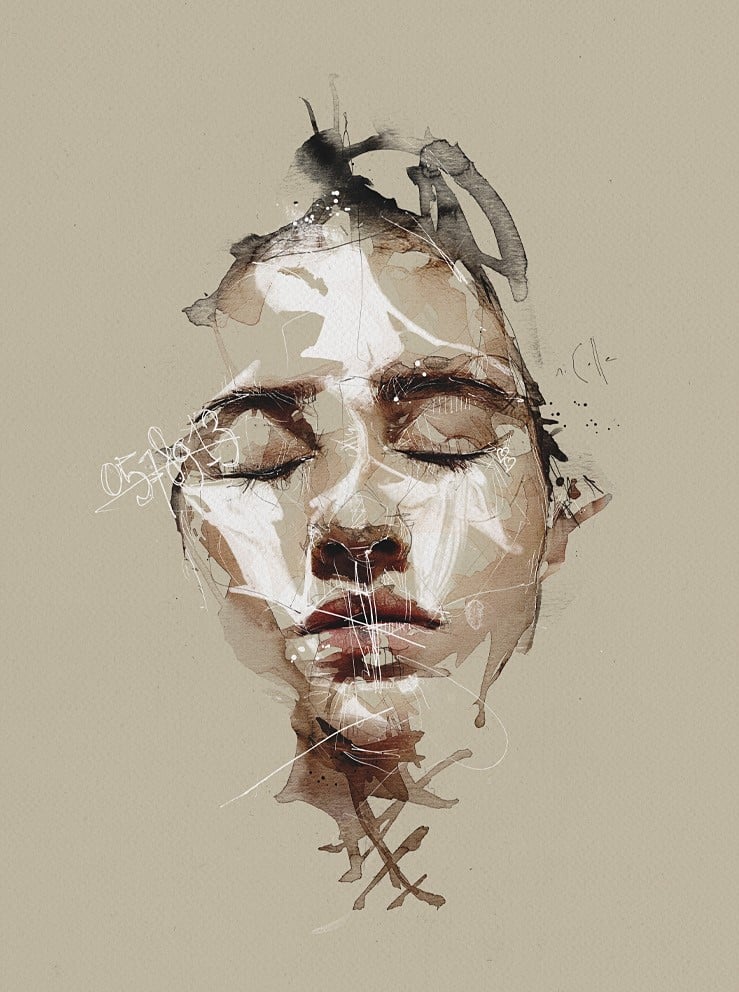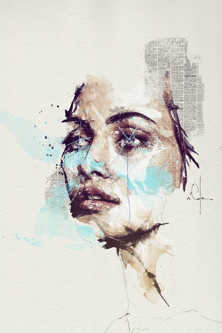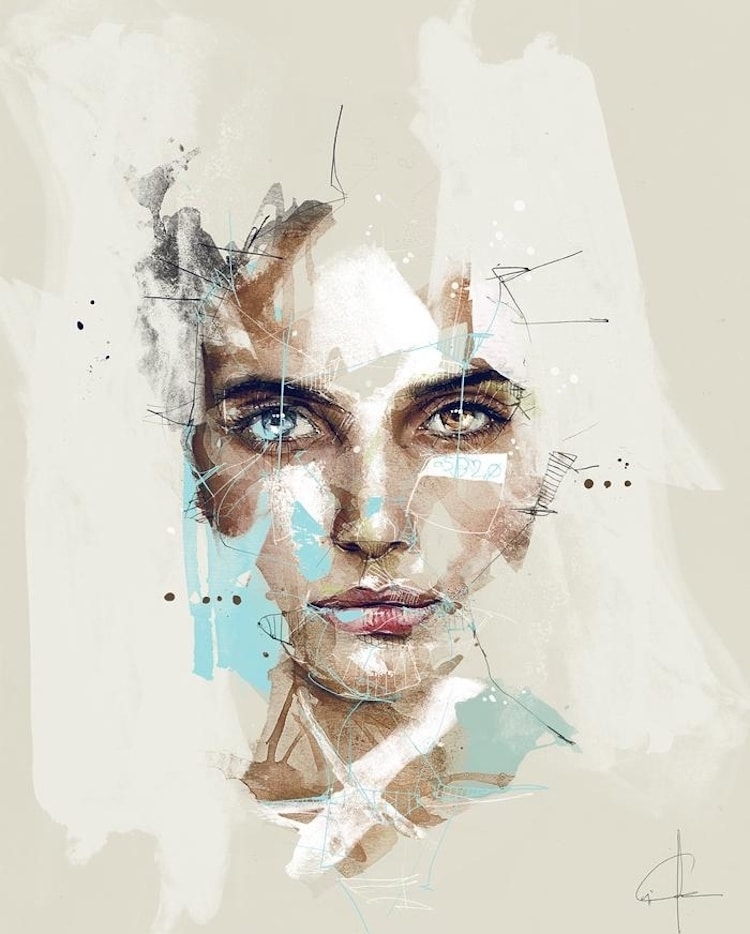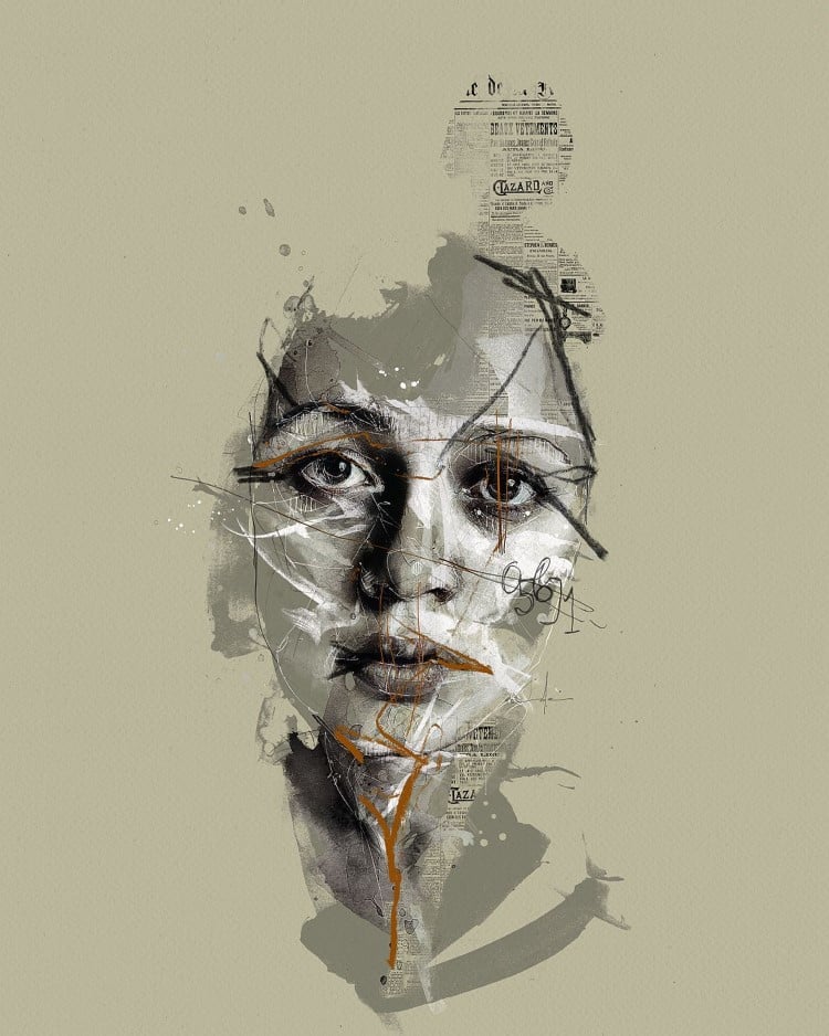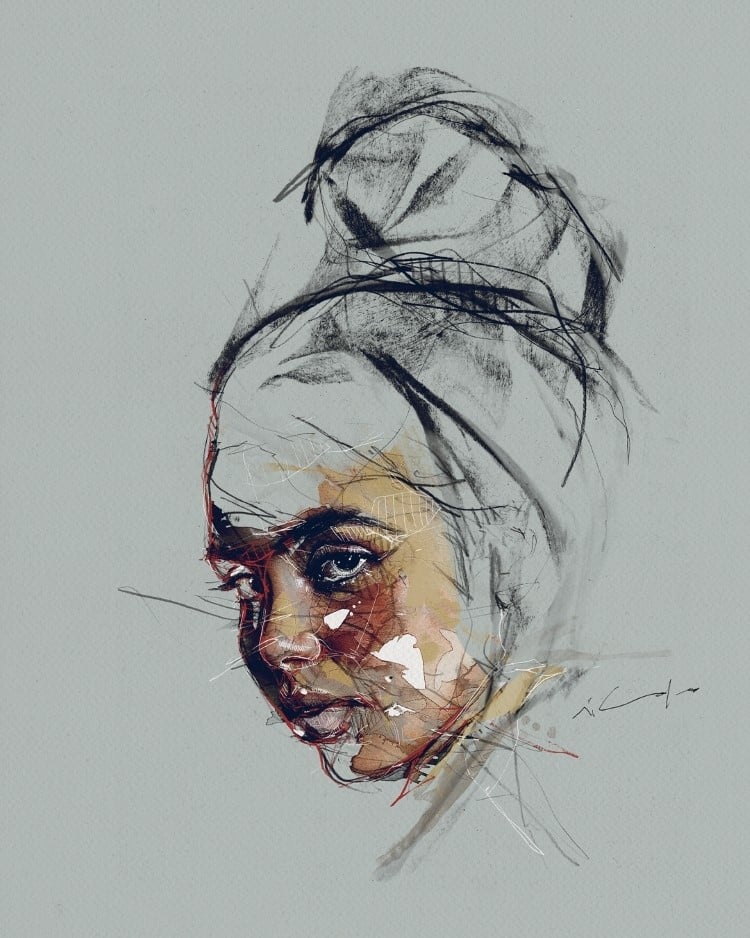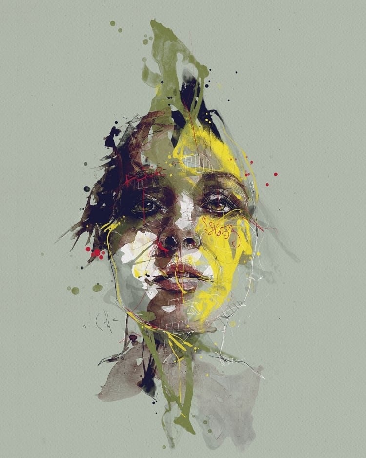Mymodernmet_ When creating a portrait, Florian Nicolle looks beyond the physical appearance of his model and works to capture their spirit. His mixed media portraits often focus on a singular part of the face, asking viewers to examine certain features closely, while others fade into the background. The results are mysterious and dynamic illustrations that dive into the soul of each person.