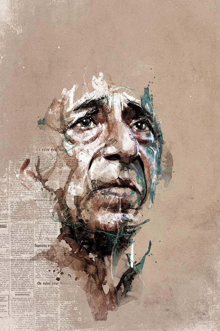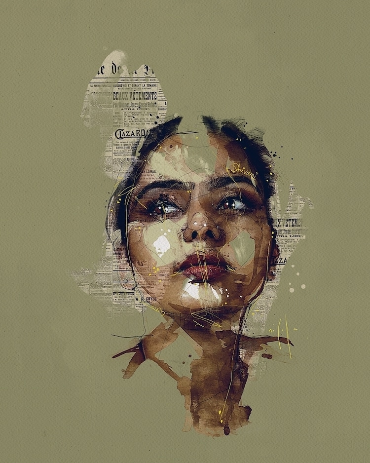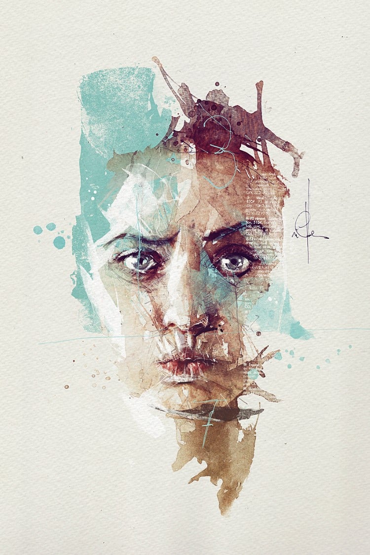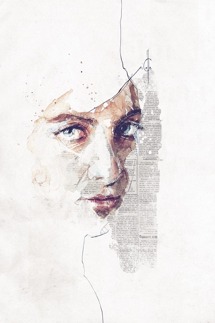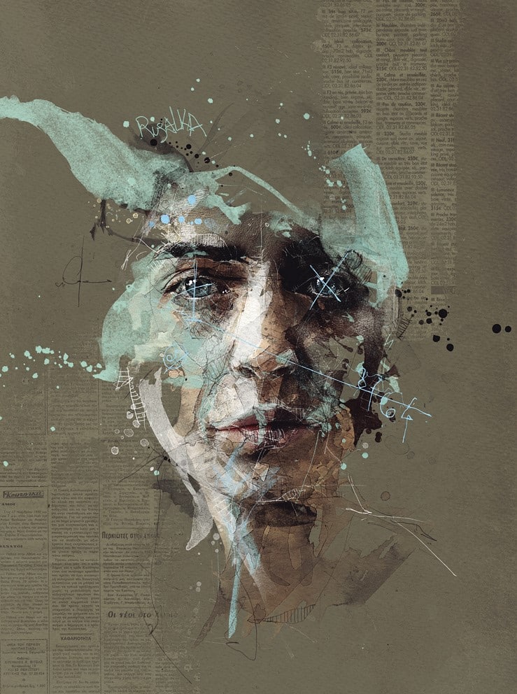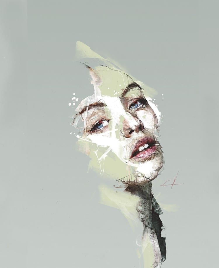 Mymodernmet_ When creating a portrait, Florian Nicolle looks beyond the physical appearance of his model and works to capture their spirit. His mixed media portraits often focus on a singular part of the face, asking viewers to examine certain features closely, while others fade into the background. The results are mysterious and dynamic illustrations that dive into the soul of each person.