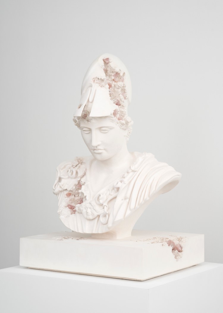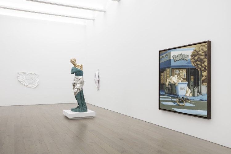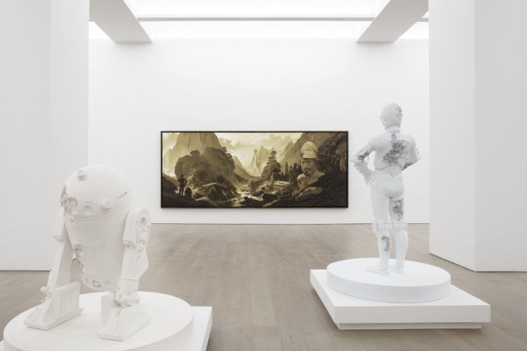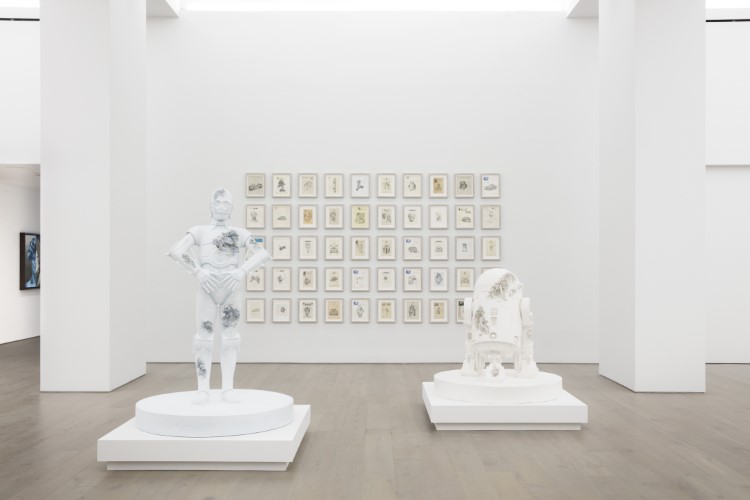 Present in both the Paris and New York shows at Perrotin are his signature eroded sculptures. For the occasion, he's included a new collaboration with Star Wars, with both R2-D2 and C-3PO featuring in the installation. But Arsham doesn't just draw from pop culture. Updated interpretations of Renaissance sculpture are sprinkled throughout the shows, both in the form of sculptures, drawings, and paintings.