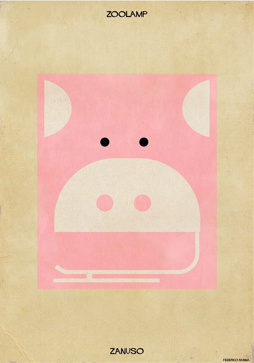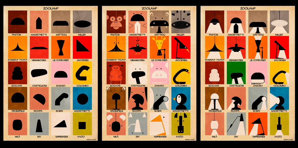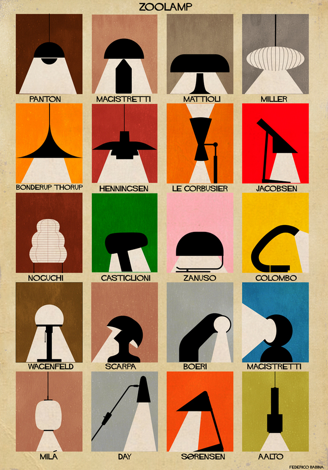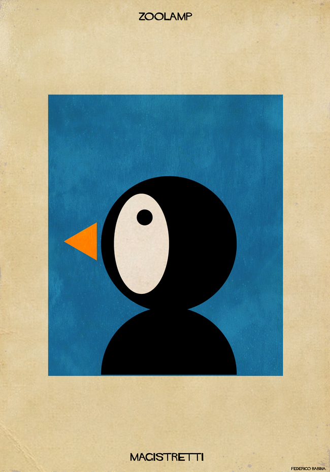 Federico babina reimagines iconic designer lamps as animals in latest illustration series