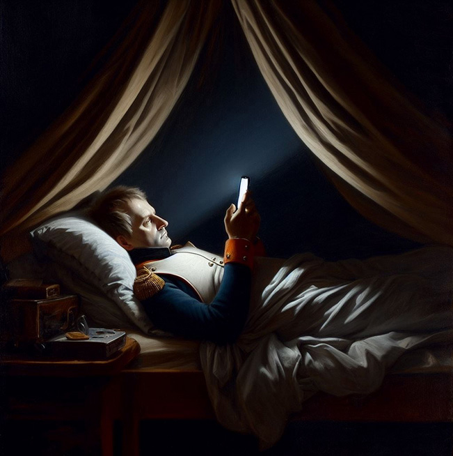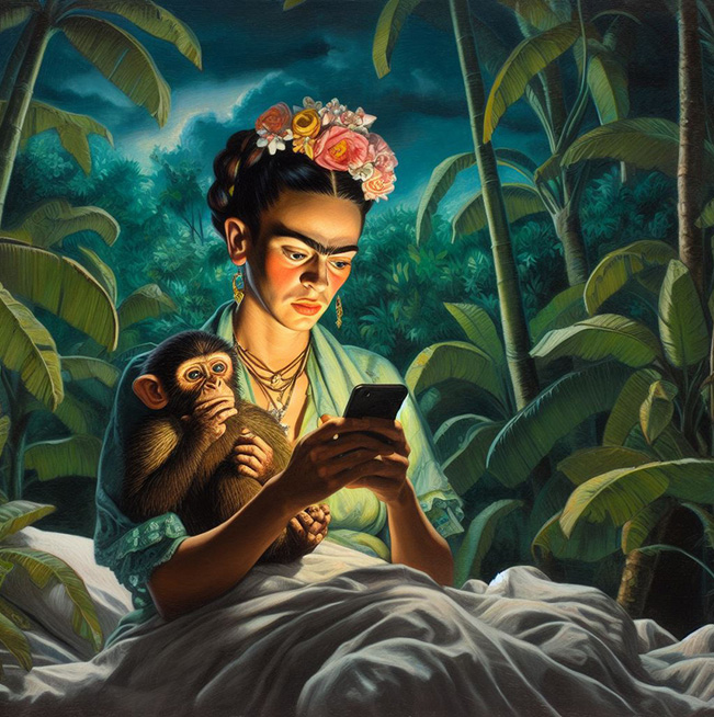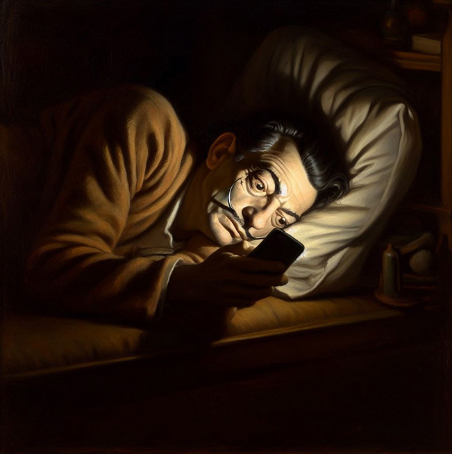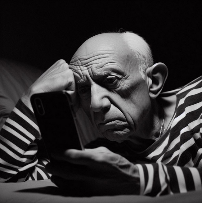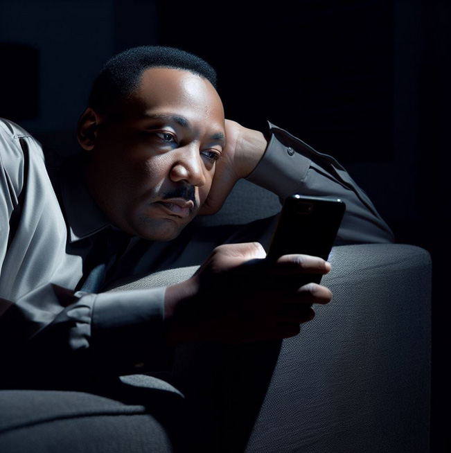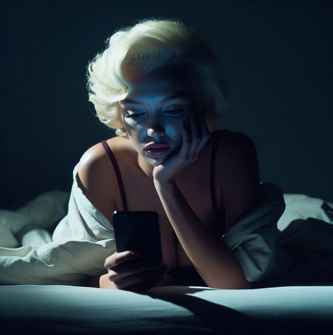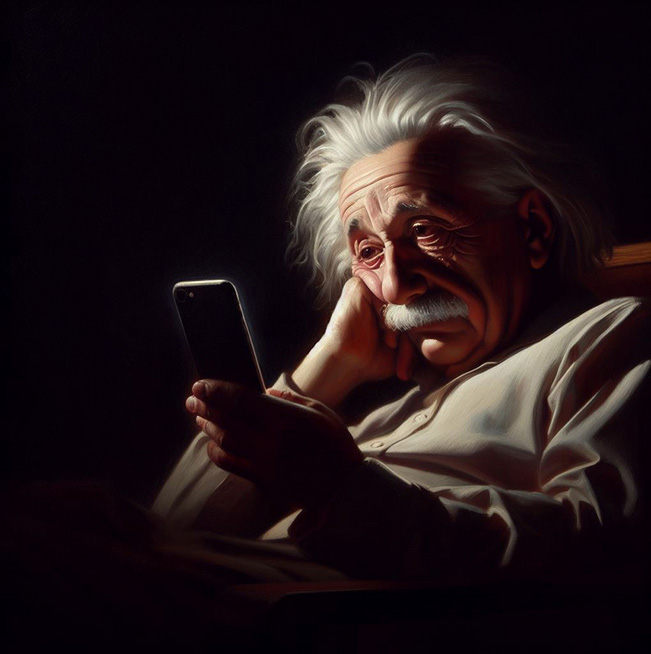 Designboom_ Alex Wadelton’s AI-generated series poses a surreal visual narrative questioning whether history’s most influential figures would have altered the course of humanity if they had been tethered to smartphones. Created with DALL·E, What Could Have Been captures iconic personalities including Albert Einstein, Martin Luther King, Mother Theresa, Jesus, Marilyn Monroe, and others, all transfixed late at night by the glow of their smartphones. As Claude Monet doubts his artistic abilities while scrolling through an endless feed of filtered images, and Shakespeare takes his musings to twitter rather than the stage, the artist urges us think about how much of our lives are spent staring at a small black rectangle, and how our time could be better spent.