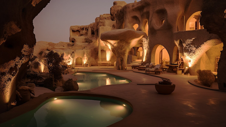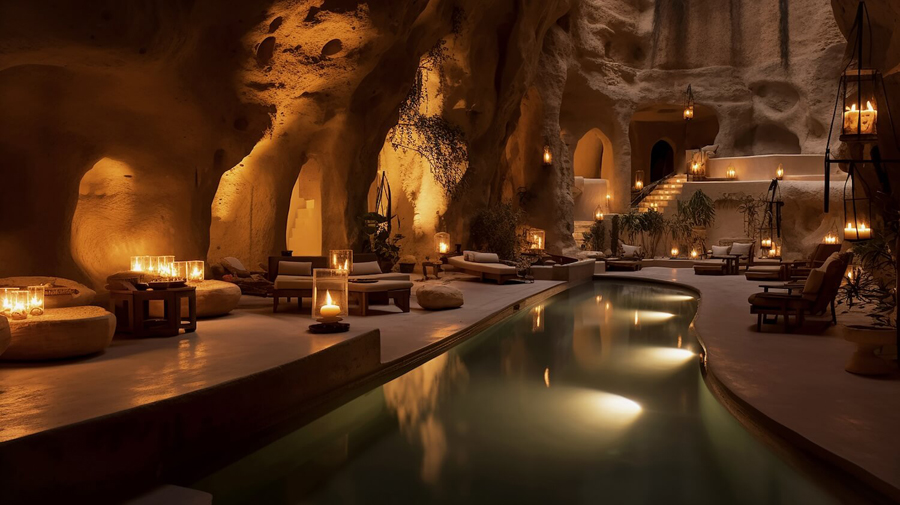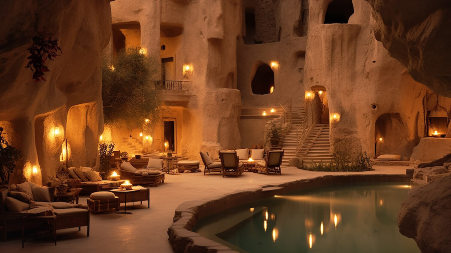 The pièce de résistance of this vision, however, is the cave pool. More than a mere recreational spot, this pool is conceived as a portal to another era. Its placid waters, on clear nights, would offer an almost ethereal reflection of the cosmos, a nod to the legends of the falling stars. It’s a space where guests can immerse themselves, not just in water, but in the age-old tales and mysteries of the valley.