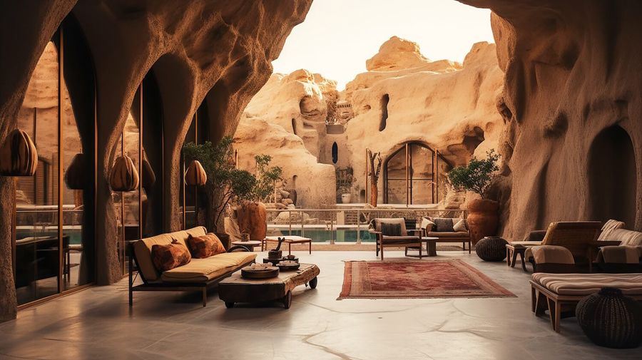 One of the cornerstones of this conceptual vision is the communal spaces. Envisioned as hubs of interaction, these areas would be adorned with artifacts and artworks inspired by the valley’s rich heritage. They would serve as platforms for guests to share stories, much like the ancient caravans that once traversed the region.