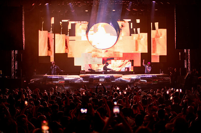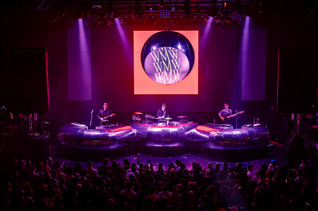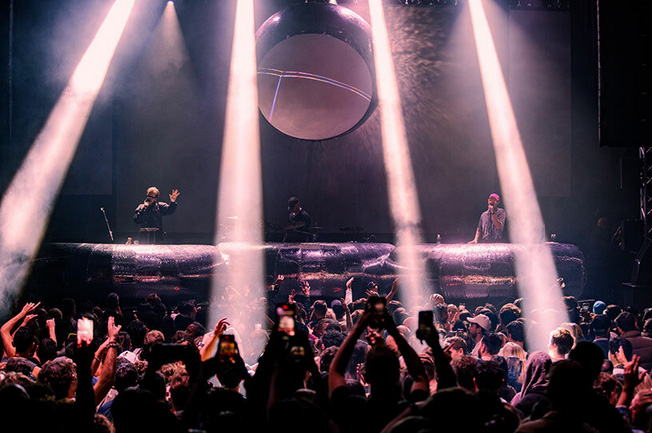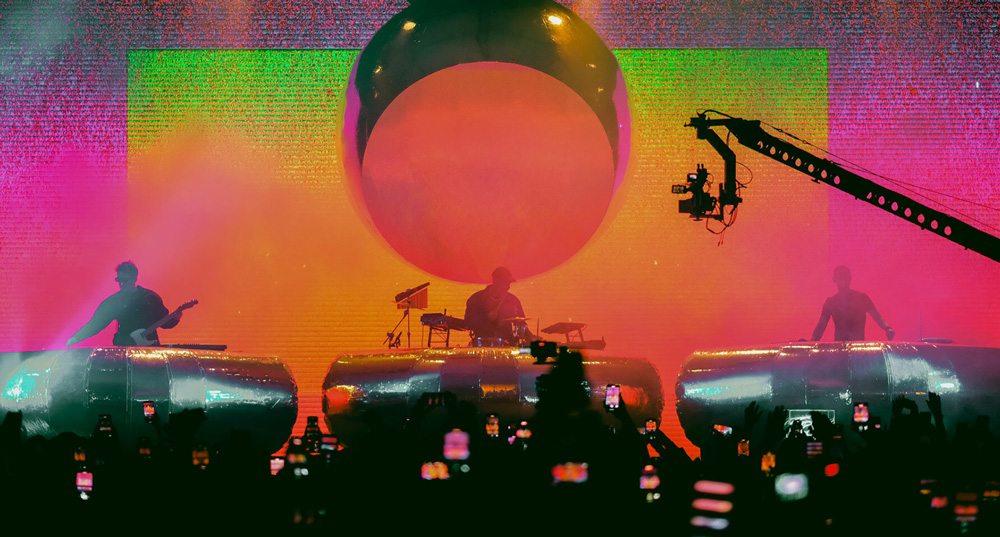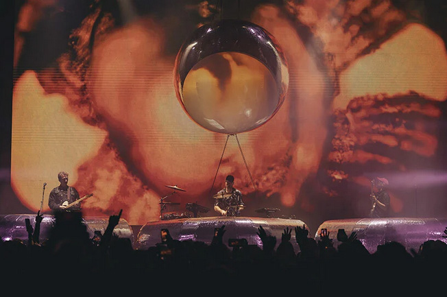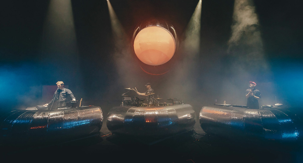 Moving beyond technicalities and rigid design terminology, WhoMadeWho paints a vivid picture of their stage as an otherworldly spectacle. They liken it to the arrival of three small spacecraft in front of a massive LED screen.‘At the top of the stage there is this gigantic silver sphere that is integrated with the lights and the visuals, but also at the same time doing its own thing visually,’ the band describes.‘The scenography and visuals add another level to the concert experience. Enhancing deeper and fundamental emotions. That is what people tell us at least,’ they add.