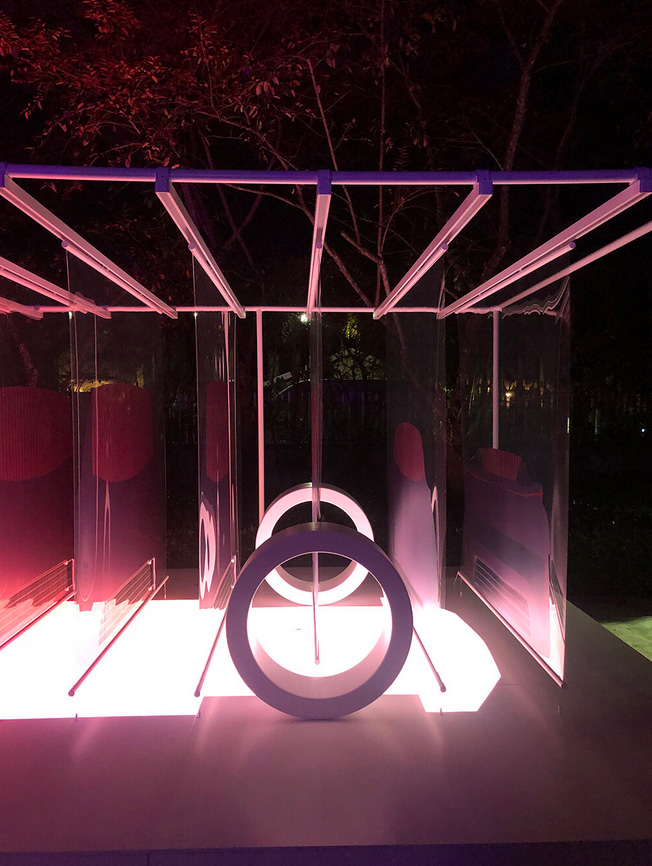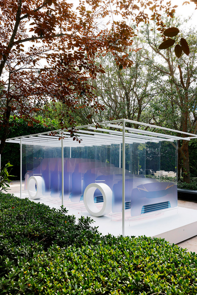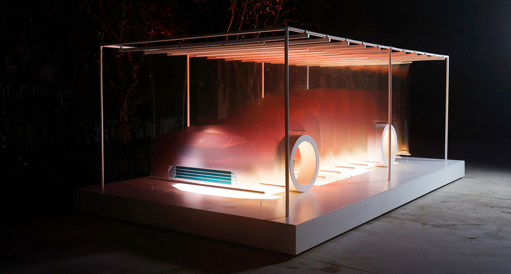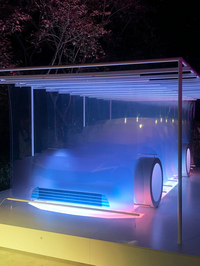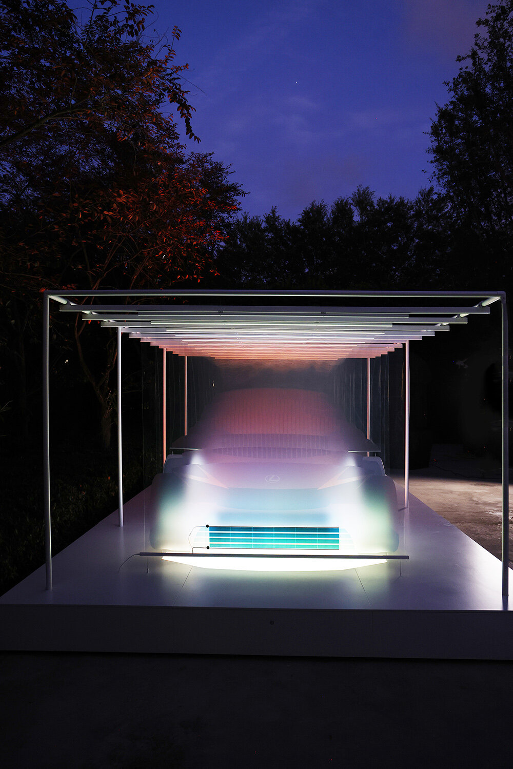 The one-to-one scale sculpture harnesses solar power, drawing energy from the OPV sheets throughout the day. These solar cells accumulate energy into batteries discreetly nestled within the sculpture’s base, again mirroring Lexus’ concept car. T energy is stored as a reservoir of solar-derived power to help sustain its captivating displays and features, most notably after sunset. ‘What’s nice about these organic photovoltaic cells is that they don’t include synthetic materials like traditional solar cells. The payback time is way less; it can take only a couple of months instead of a couple of years. Soon people will be able to print them on an inkjet in whatever shape we like,’ the designer points out during our conversation.