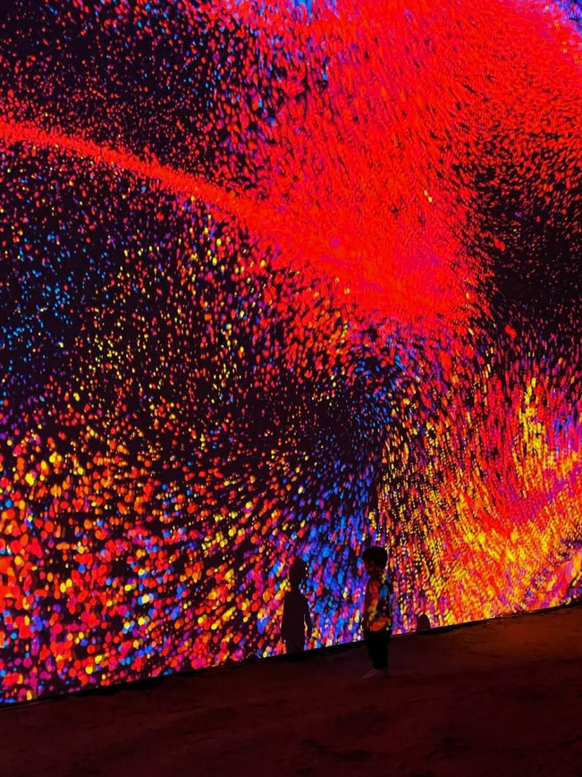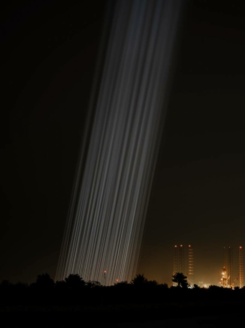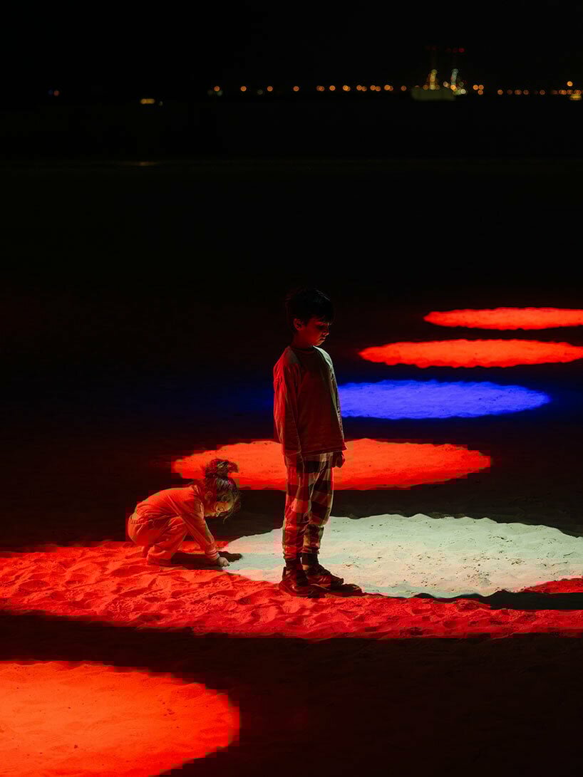 Elsewhere, Mexican-Canadian artist Rafael Lozano-Hemmer takes over the uninhabited Lulu Island, transforming it into his sci-fi-like Translation Island overlooking downtown Abu Dhabi, its darkness only illuminated by mesmerizing glimpses of sound and light. The exhibition weaves an interactive journey through 10 immersive, multimedia artworks bringing together collaborations with artificial intelligence, ultrasonic atomizers, pencil-beam robotic searchlights, thermal cameras tracking fire pits, multilingual translations of Finnegan’s Wake across the waters, and more.