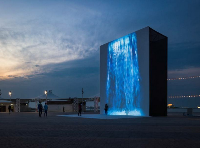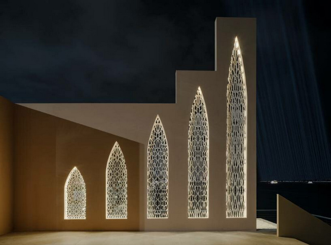 The site specific Bait al-Nur by Tunisian visual artist Nadia Kaabi-Linke evokes both Oriental and Occidental architecture as it renders tribute to light, or electromagnetic waves, connecting everything in the visible universe through abstracted shadows and geometries. The cross-cultural pavilion offers a moment of secluded respite illuminated by ambient lighting and the serenity of a space of worship along the corniche. ‘My wish is that it is a place to share spirituality, mysticism, architecture, and just daylight. It is an embodied daylight in the space,’Kaabi-Linke shares with us.