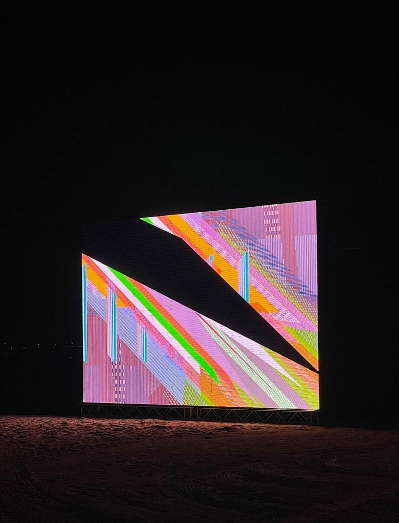 Palestinian artist Samia Halaby revisits two of her iconic Kinetic works from the 1990s, City and Yafa, initially created ‘to paint the way things sound in addition to the way they move’. Unfolding as a dynamic symphony between painting and music, the works pose large LED screens along the coastline, replaying recordings of previously live performances of Halaby’s abstract brushstrokes brought to life by her experimentations with programming to depict themes of evolution.