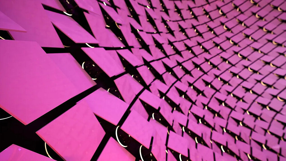 The Pearl sculpture by BREAKFAST simulates various natural phenomena such as rolling waves, gentle breezes, shooting stars, and the dynamic ocean surface. Drawing its inspiration from the tranquility and unpredictability of the sea, each tile is meticulously arranged in a Fibonacci sequence, echoing patterns found in marine life. But what truly sets The Pearl apart is its interactive nature; its movements are influenced by real-time tidal and wind data from the Caribbean. This feature allows it to continuously transform, reflecting the current environmental conditions in an ever-evolving display of calmness or intensity.