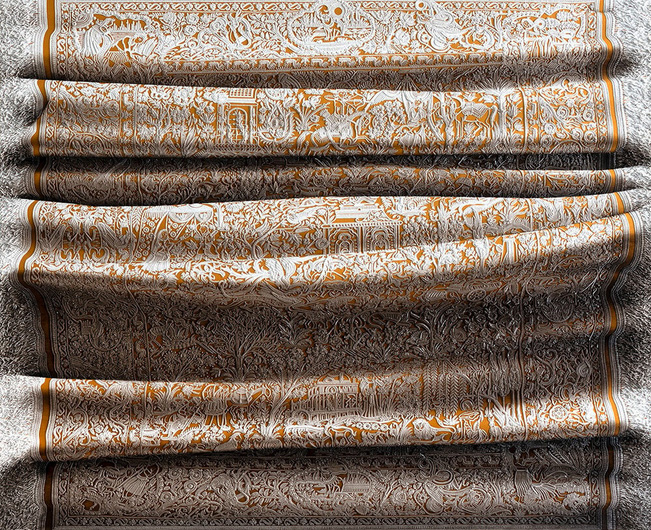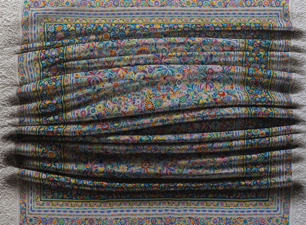 Designboom_ Marc Straus present Antonio Santín: Recent Works, a series of new paintings by the Spanish artist in his sixth one-person exhibition with the gallery in New York. Santín is recognized for his vivid paintings of intricate tapestries that reflect the dynamic interplay of light and shadow, the seen and unseen. Echoing techniques of Tenebrism and Chiaroscuro from the Renaissance, the artist portrays dramatic scenes, infusing both human expression and textile folds with a playful charm. This latest exhibition, running until March 3, 2024, is compelling in that collectively, in pattern and motifs, the hyperreal paintings tell their own story, whether on ethnicity through shared culture, geography, or botanical reference.