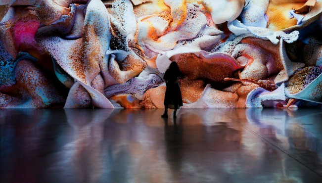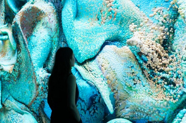 as Anadol sees it. The generative AI multimodal focuses on nature, and is trained on approximately 5 billion images of coral reefs and the rainforest, brought to life by AI in abstracted choreographies that invite interaction and contemplation.‘We are using nature as an input for AI to raise awareness of its beauty and complexity. At the moment, AI research is focusing on human reasoning and how to mimic it, but to me, nature needs a different focus that is very different to our logic,’
