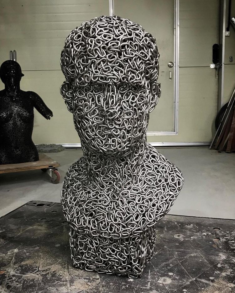 The chains in his work aren't just physical. According to Seo's website, his sculptures and the medium he uses to build them are inspired by the human condition and the struggles that often come with it. Seo states, “The chains in my work are fetters. The fetters are all about our contemporaries’ complicated, forced relationships and cravings for materials. I want to show, through my works, the portraits of our time where personal thoughts and lives are ignored.”