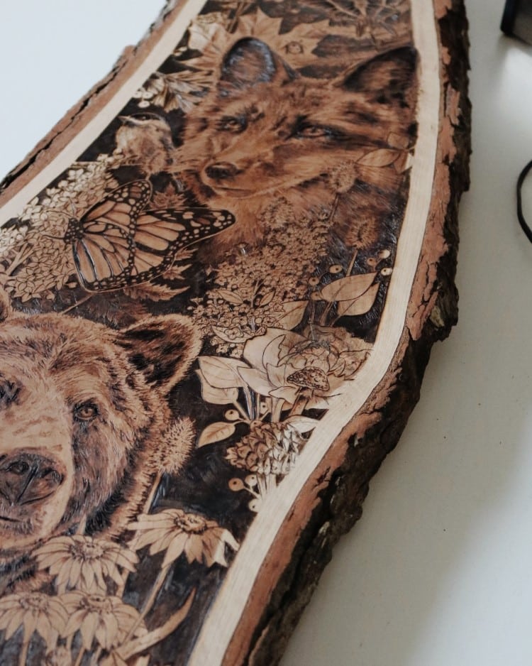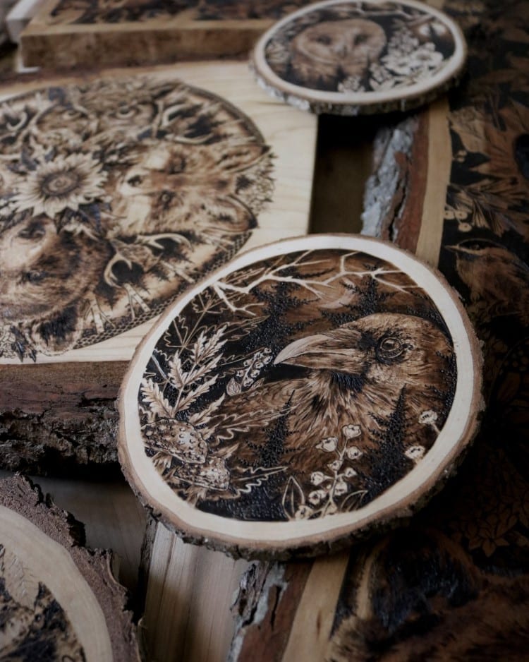 O'Reilly is not only passionate about creating her own pyrography. She enjoys sharing the secrets of her wood-burning art with others and does so through her YouTube channel and TikTok. She also has an online course for those looking to get started with pyrography, as well as a book. If you are looking to take home a piece of her art, she has original pieces available on her website and also takes commissions.