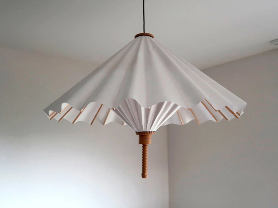 Beautifullife_ Last year, a very special lamp called the Wagasa Lamp caught everyone’s attention and won an award at the Tyvek Design Awards. What makes this lamp so special is not just its looks but how you can play with its light. Inspired by the traditional umbrellas or parasols seen in many Asian countries, the lamp uses a special kind of fabric called Tyvek, made by a company named DuPont, and it’s attached to wooden rods. The coolest part is that you can open or close it just like an umbrella. When you open it, it lets out more light, and when you close it, it dims the light down. This fun way of controlling the light has made the Wagasa Lamp a favorite for many people, and it also fits perfectly in homes that love a simple, Asian-inspired style.