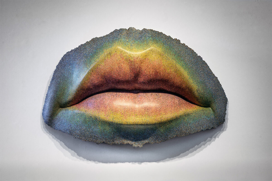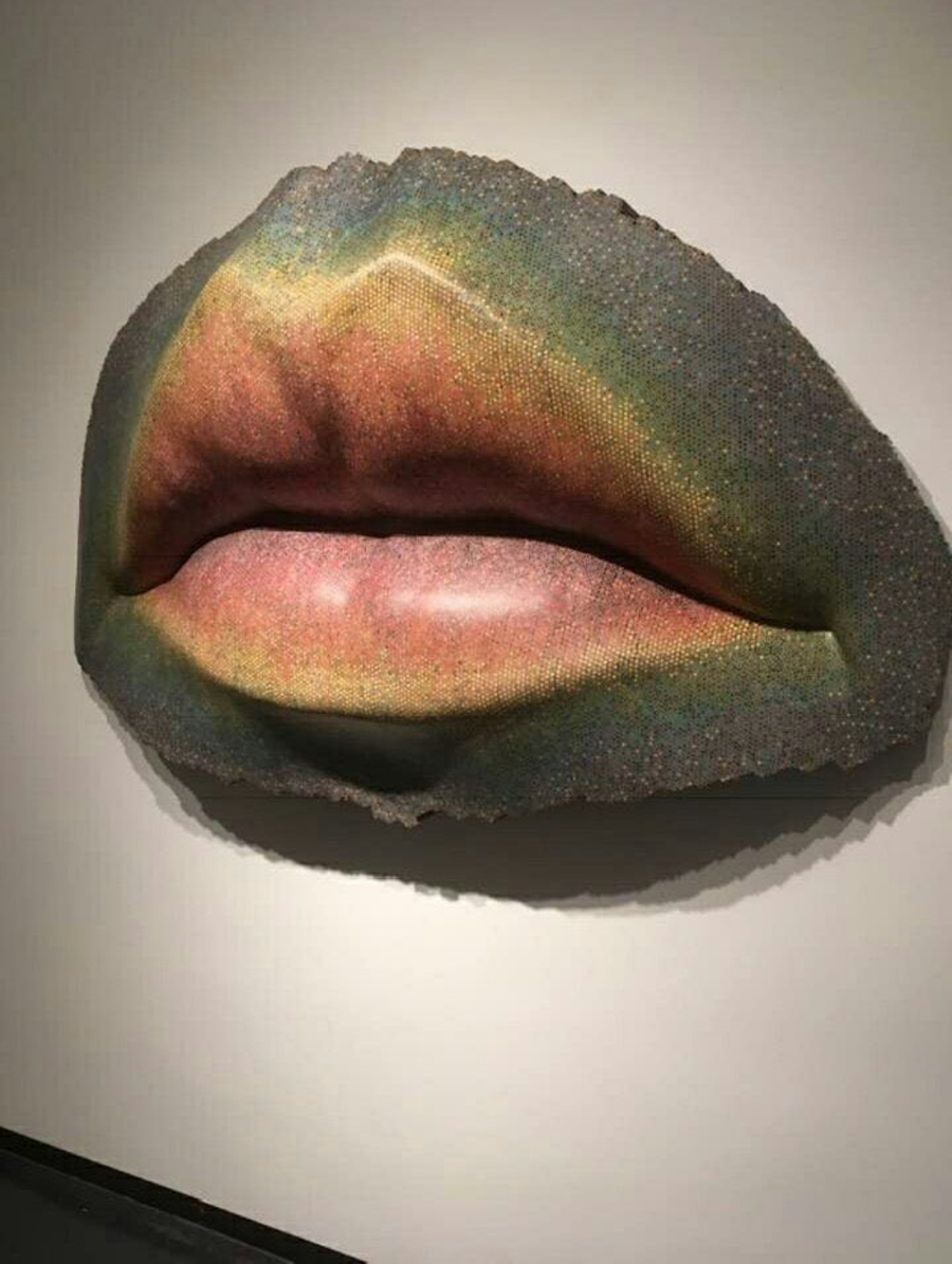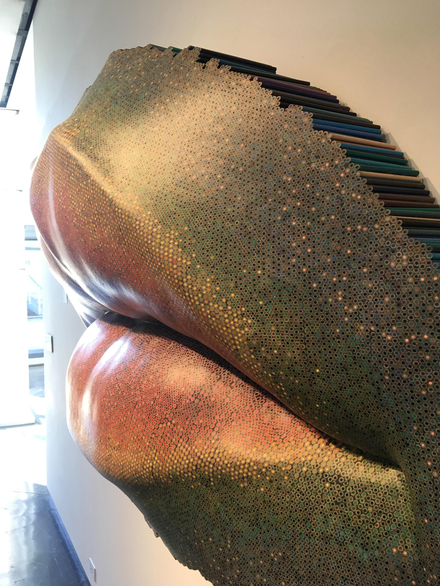 Mark Aeling`s lips sculpture from colored pencils