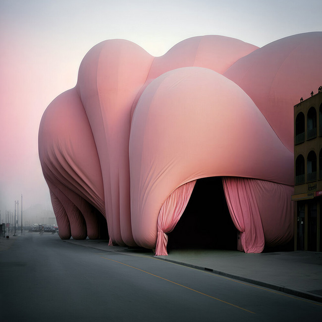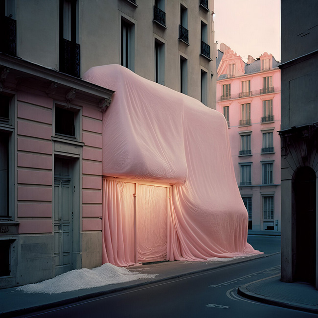Designboom_ Andrés Reisinger‘s now-iconic Take Over series quietly blossomed on a sleepless night ‘as a simple exercise of creation‘. Curious about the booming potential of Artificial Intelligence, the Argentinian artist began experimenting with his dream-like digital imagery, but this time at the scale of cities. The series, which transcends geographical boundaries into the virtual plane, takes place in major international capitals such as London, Rome, Paris, Tokyo, and New York City, engulfing their historical architecture in surreal pink and white drapes, each one more playful and pleasing than the next. Like his previous creations, Take Over seeks to blur the lines between the digital and physical spheres, questioning our experience of what reality means. ‘To me, reality goes beyond physicality or virtuality: anything that constitutes an experience is real, and where they take place is absolutely secondary,’ he tells designboom.