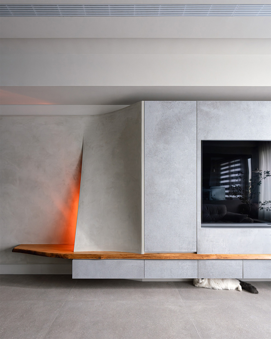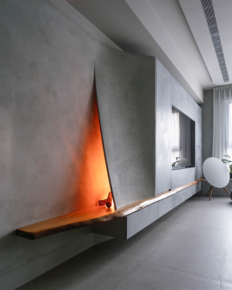Beautifullife_ Designed by Wei Feng Design Studio and captured by Joey Studio, this cozy gray home exemplifies modern minimalism, with aт attentive glance on its sleek and creative faux fireplace. This fireplace seamlessly blends warmth and minimalist style, creating an atmosphere that invites relaxation and comfort. So interesting design of the fireplace makes it the centerpiece of the living room, drawing the eye and enhancing the overall aesthetic of the space.